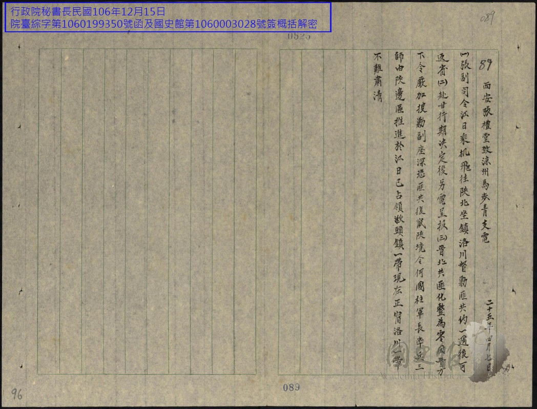 閻錫山史料/文件/電報/各方往來電文原案及錄存