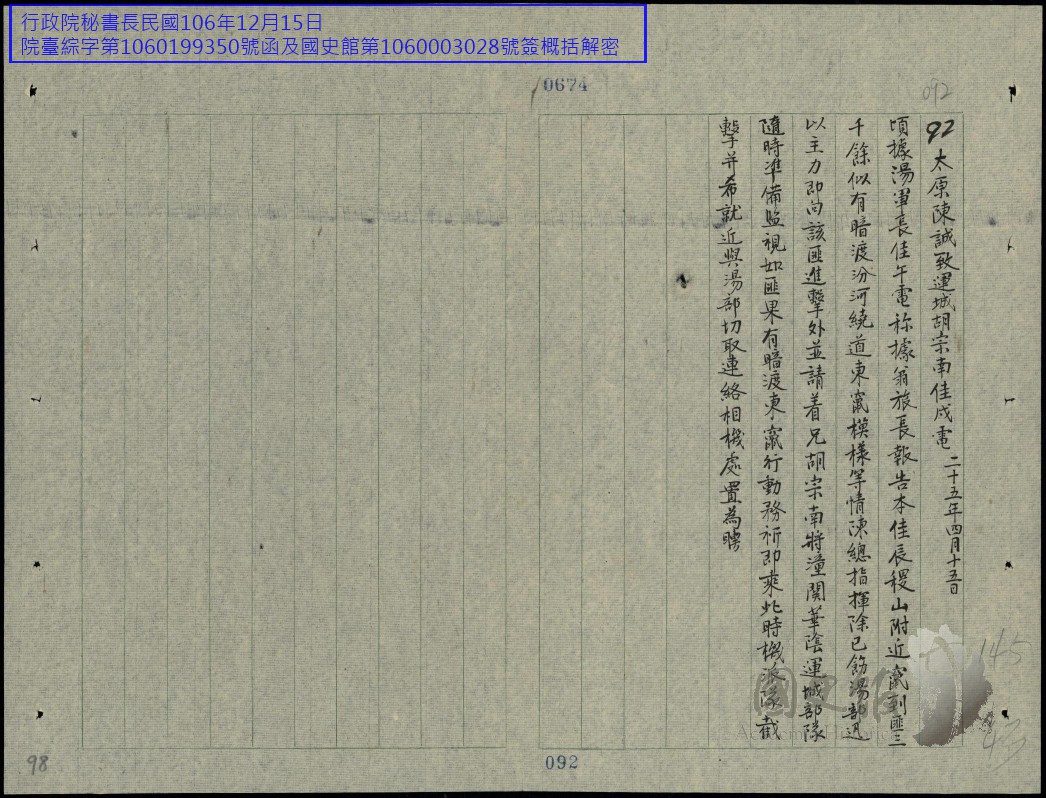 閻錫山史料/文件/電報/各方往來電文原案及錄存