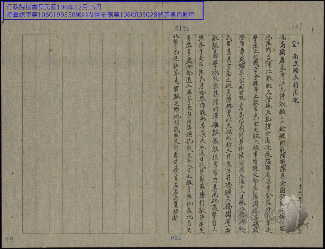 各方民國26年8月往來電文錄存(三)【原卷名:各方往來電文民國二十六年八月第三冊】