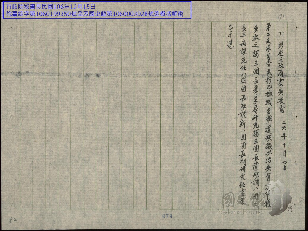 各方民國26年10月往來電文錄存(二)【原卷名:各方往來電文民國二十六年十月第二冊】