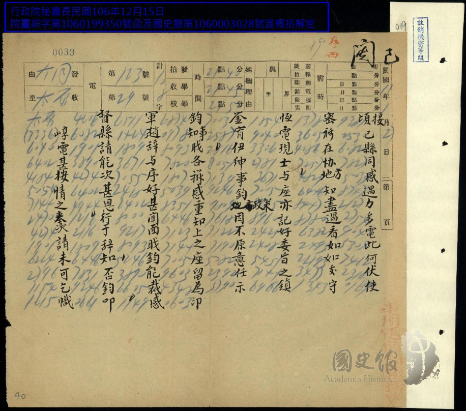 閻錫山史料/文件/電報/各方往來電文原案及錄存