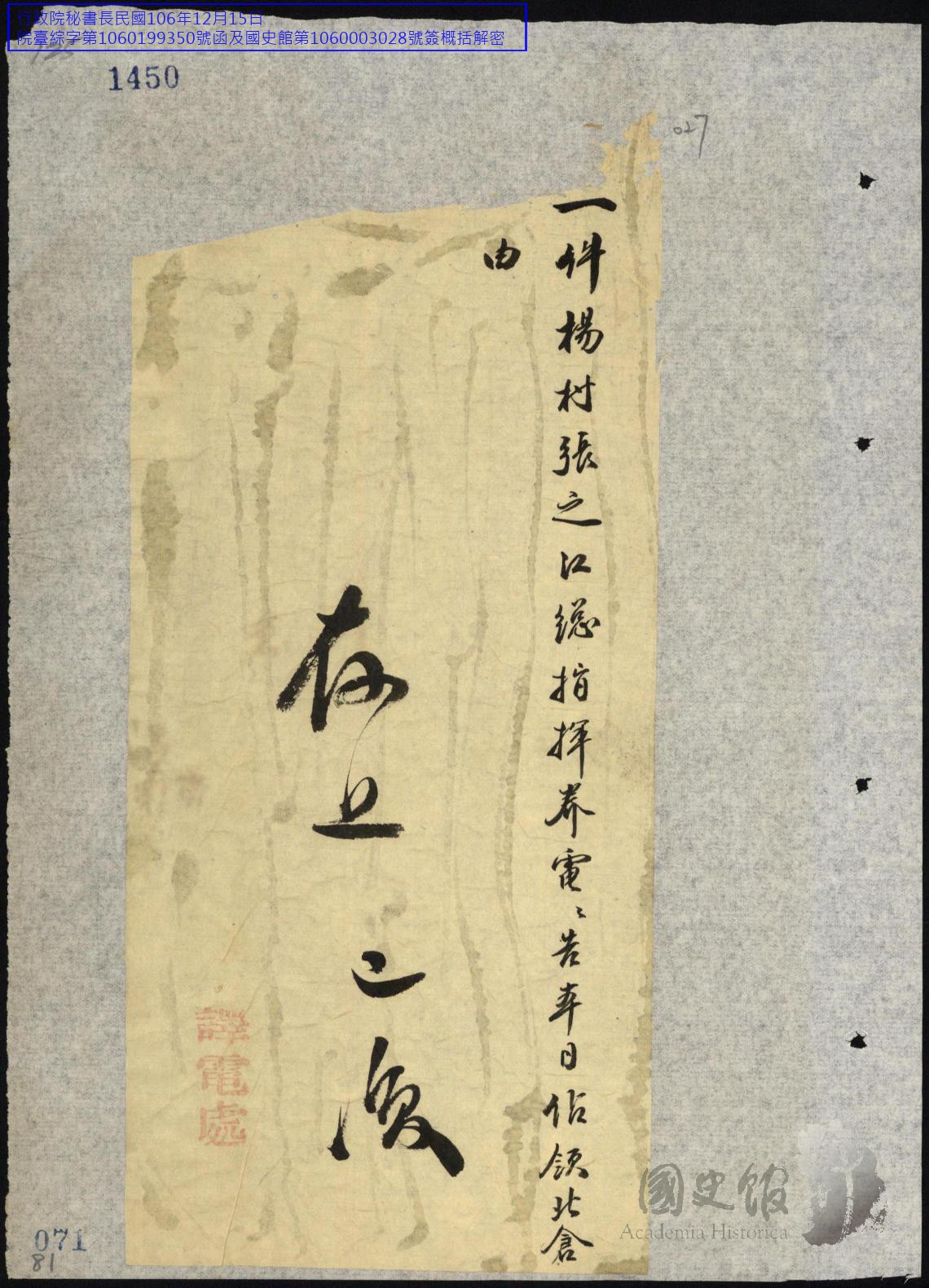 閻錫山史料/文件/電報/各方往來電文原案及錄存