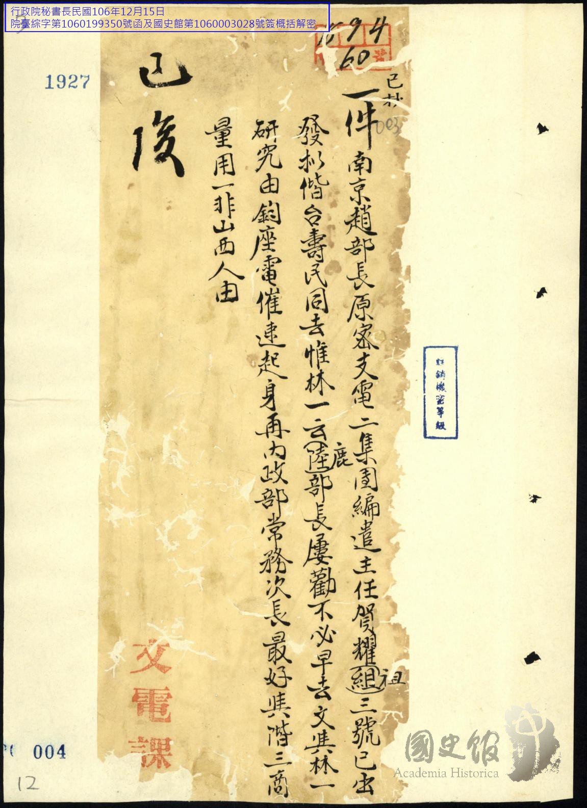 閻錫山史料/文件/電報/各方往來電文原案及錄存