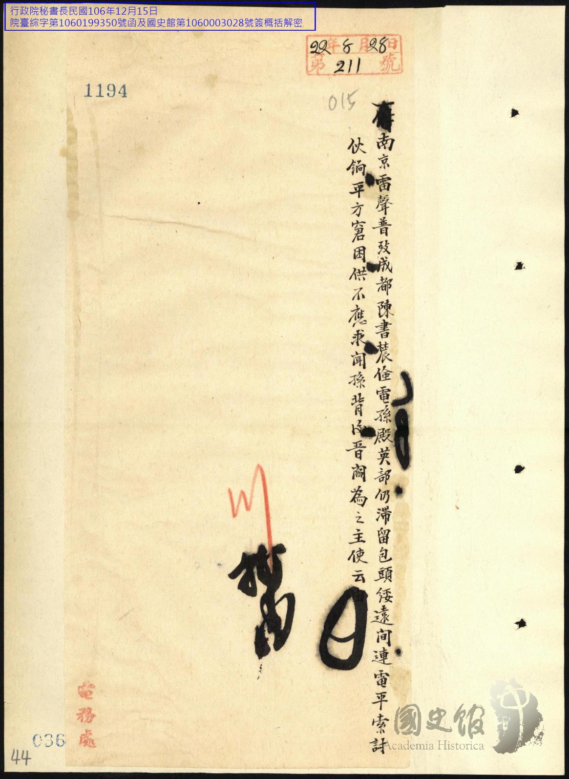 各方民國22年8月往來電文原案(四)【原卷名:各方民國廿二年八月往來電文原案】