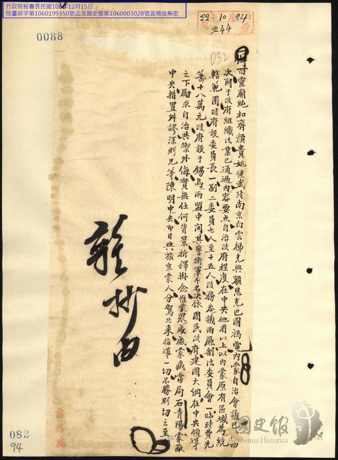各方民國22年10月往來電文原案(五)【原卷名:各方民國廿二年十月往來電文原案】