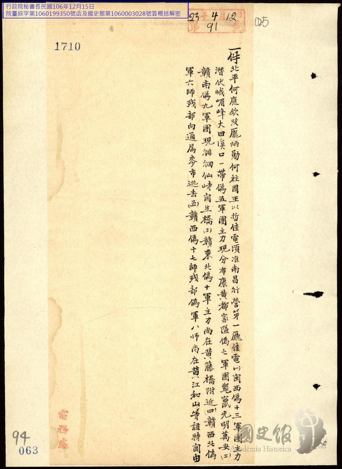 各方民國23年4月往來電文原案(二)【原卷名:各方民國廿三年四月往來電文原案】