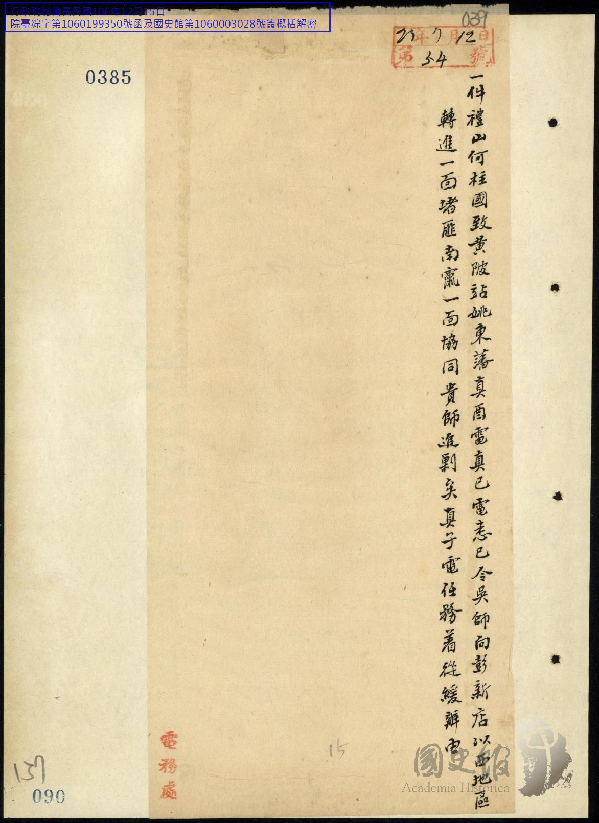 各方民國23年7月往來電文原案(一)【原卷名:各方民國廿三年七月往來電文原案】
