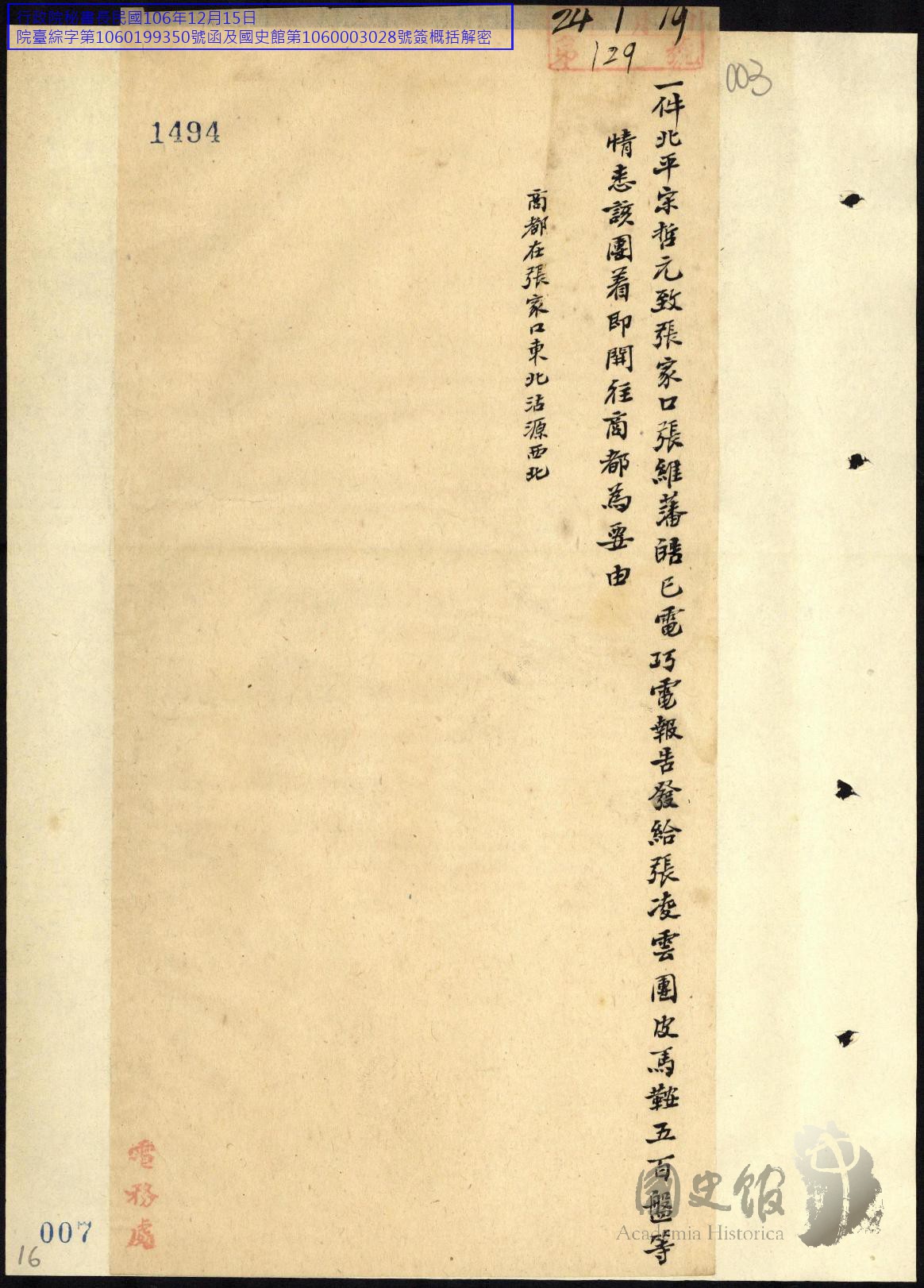 各方民國24年1月往來電文原案(三)【原卷名:各方民國廿四年一月往來電文原案】