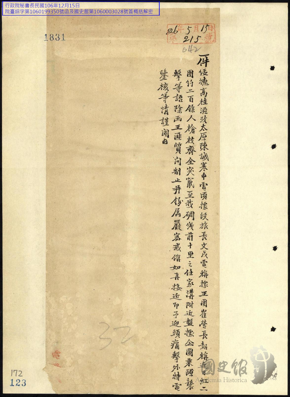 閻錫山史料/文件/電報/各方往來電文原案及錄存