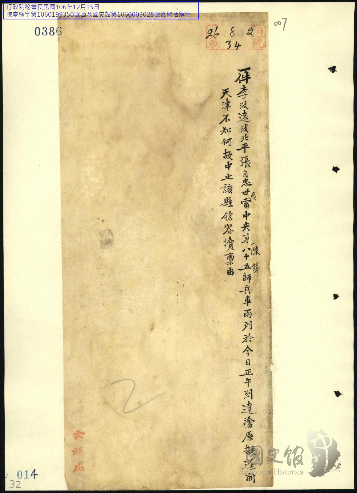 各方民國26年8月往來電文原案(三)【原卷名:各方民國廿六年八月往來電文原案】
