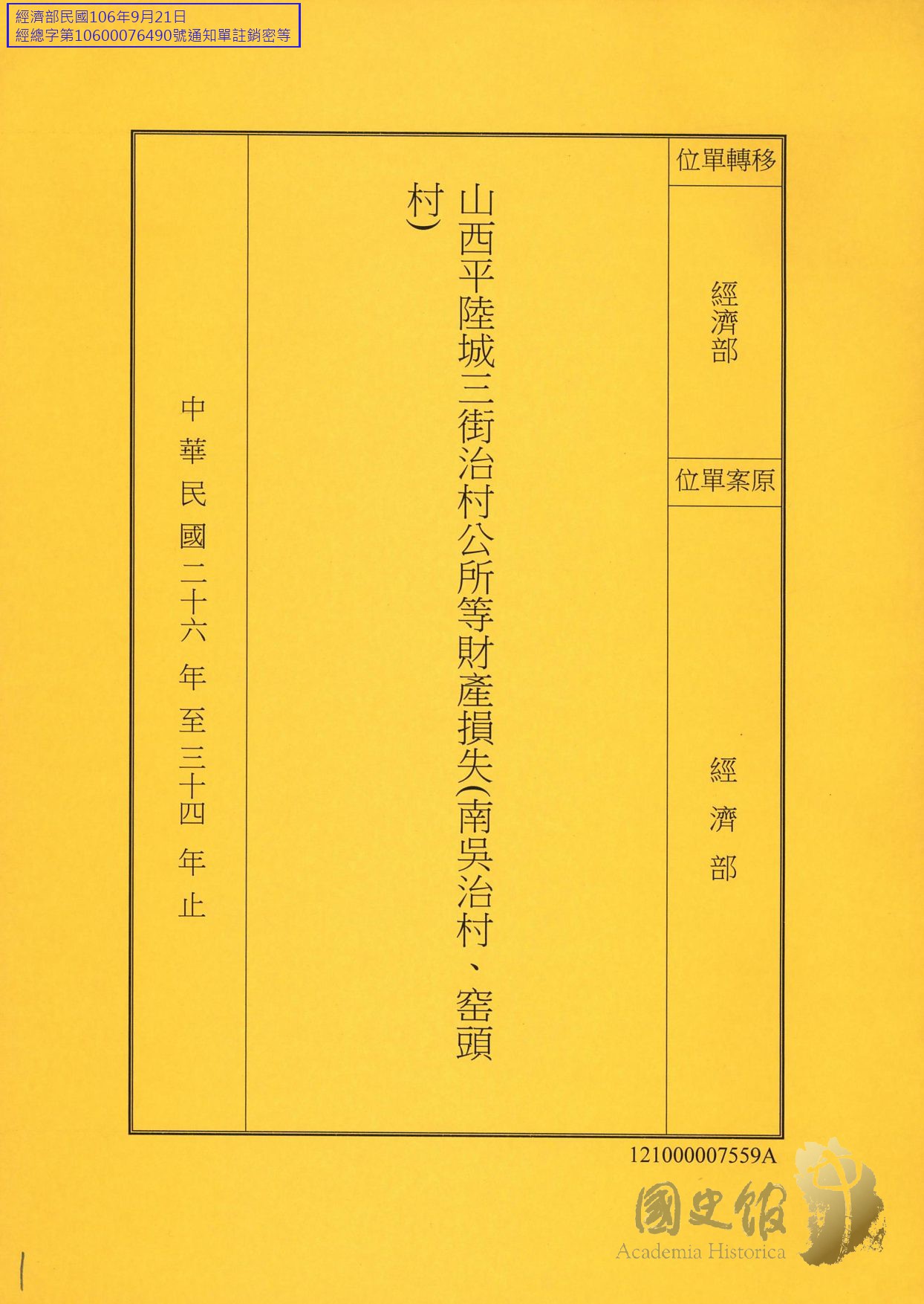 山西平陸縣南吳治村窑頭居村、北村居村財產損失