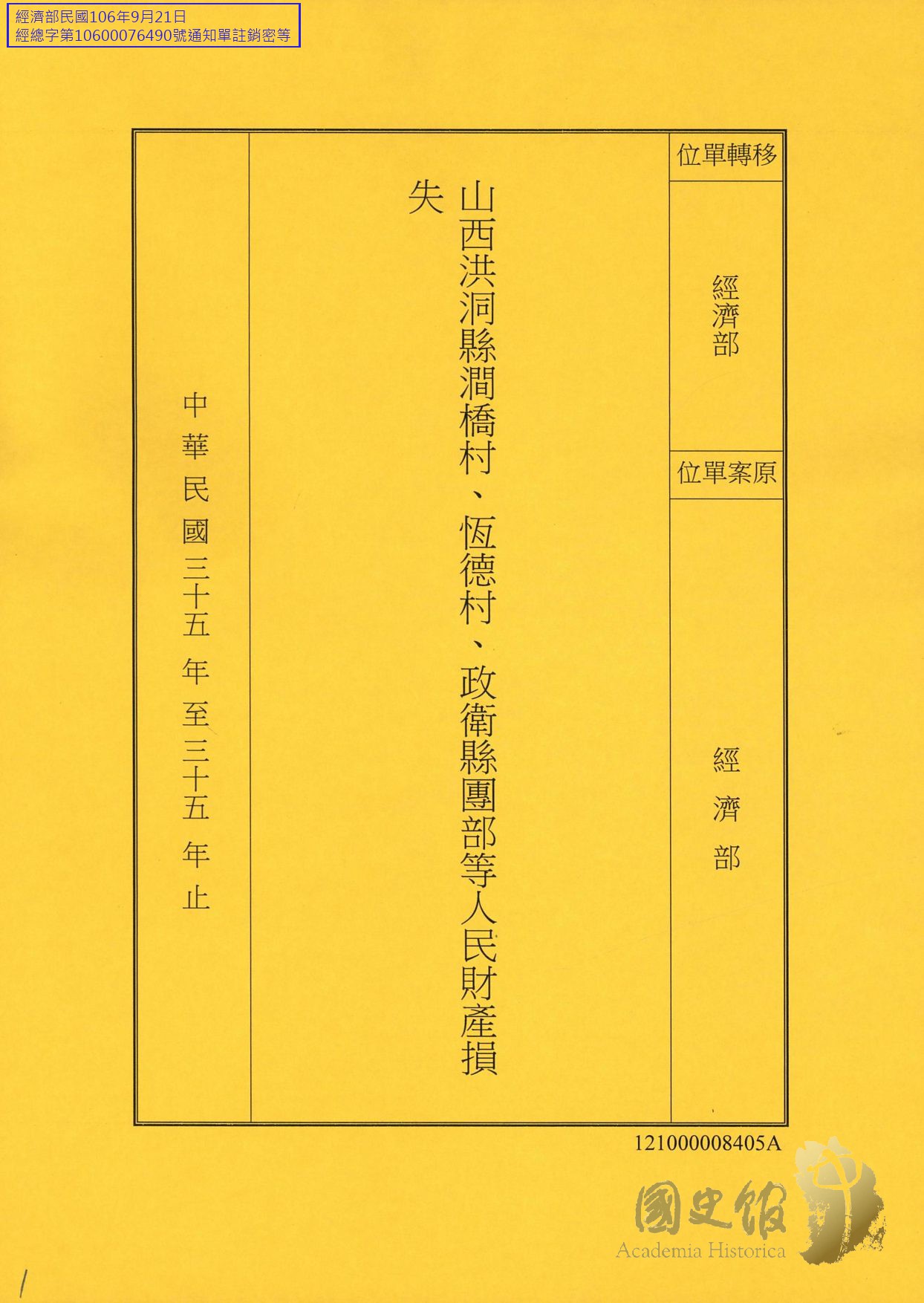 山西洪洞縣第一區恒德編村第一至十六閭財產損失