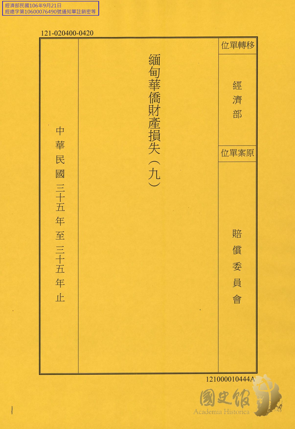 賠償委員會/損失調查統計/僑民/