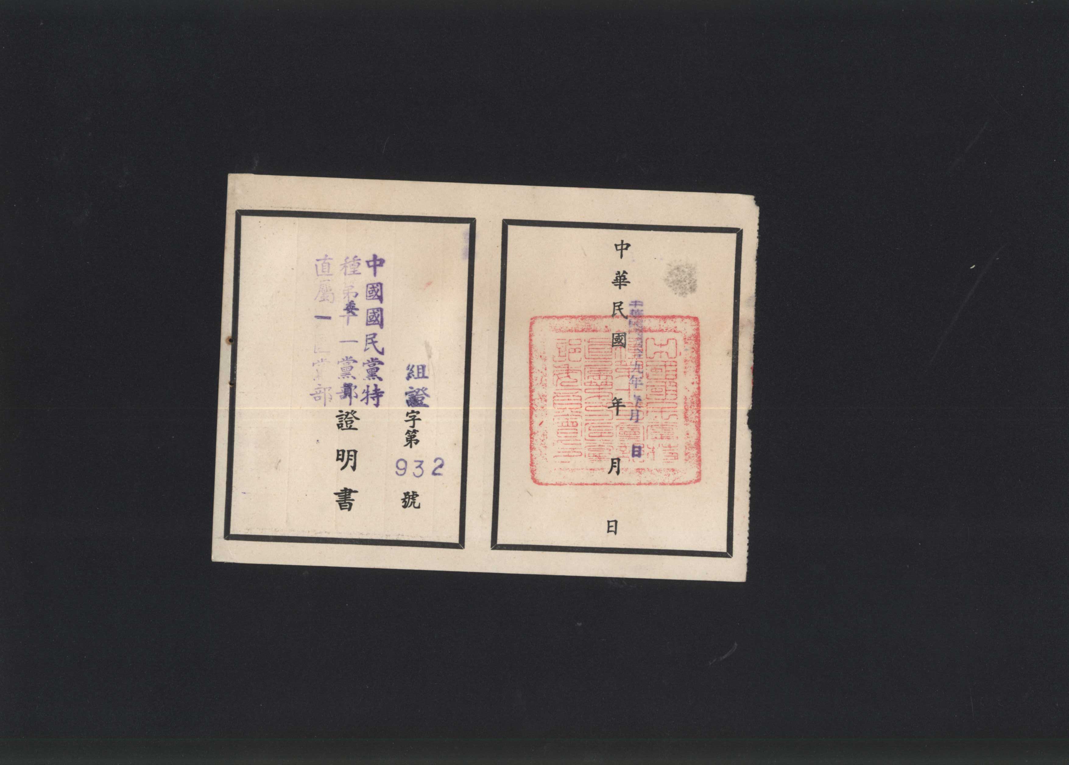 中國國民黨特種第十一黨部直屬一區黨部證明書為一張證明書,不具有國民黨黨徽,此證明書與一般黨證不同,以說明其為特殊黨員,正面除寫有證明書名稱外,還列有為組證字第932號,右側則有民國49年 (1960)1月1日核發,並蓋有中國國民黨特種第十一黨部證明書關防印。背面則羅列姓名、黨證字號、單位、屆次、職務、任用日期,並印有常務人員之姓名及印鑑。在黨國時代校園中的教官、師長普遍會建議學生加入國民黨,在取得黨證後,便有許多福利及優惠,包含:飯店、餐廳、飾品店皆有折扣,並有獎學金等補助,所以許多人從小便擁有黨證,對於家中較窮苦之學生幫助甚多,而此證明書證明其主要任職中國國民黨幹部,與一般黨證不同的是,其含有特殊身分,在福利上也更加優越,黨員層級更高。今日中國國民黨特種黨部多已不存在。
