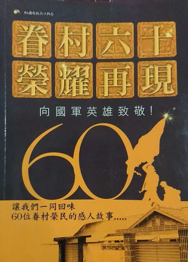 由於歷年桃園眷村文化節皆有社團展出榮民英雄的文物,且其皆已垂老,或像被世人遺忘般寂寞地活著,甚至正以一種意想不到的速度離開。適逢政府遷臺六十週年,桃園縣政府文化局乃以「向國軍英雄致敬」為2009年桃園眷村文化節年度主題,並以口述歷史的方法記錄60位榮民英雄的故事,結集成《眷村六十榮耀再現:向國軍英雄致敬!》一書,表彰他們對國家的貢獻,共同記憶他們的故事。 書名頁 縣長序 局長序 目錄 生死存亡一瞬間/謝正榮 國仇家恨報血仇/馮冬雲 蘇武牧羊志更堅/詹祖鳳 砲彈米位精準為國立功/周仲衡 古寧頭的烽火歲月/周菊培 殺人放火衛國家,行善付出為最樂/徐曙 必死決心換生機/胡志凌 走過烽火歲月/何昇光 滇緬風雲,震撼人心/董生有 心繫國難再入營,子承父業盡忠門/丁志賢 戰地採訪留青史,把握三平老頑童/鄧勇方 扛著槍桿子的米粉郎/鞠其祥 富國島上的復國軍人/楊開和 我從曬鹽場,投身到抗日反共大業/包梅玉 我是血染山河的青年軍/陳俊良 年華獻給國家/解交全 當兵為兄弟,打仗為國家/劉廣慶 從政經驗/朱樟興 軍旅生涯與從政經驗/吳恢烈 難忘軍旅經驗/李榮斗 服務人群與孝養母親/周雄 眷村改建經驗談/胡士勳 軍旅生涯與眷村服務經驗談/常兆祥 輔導學生經驗談/郭文武 戰爭經驗談/蒲天喜 美術人生/謝東成 訓育工作心得/韓松盛 作戰經驗談/曾鈺椿 大陳島作戰經驗與特戰部隊回憶/鄭文闊 陸光四村改建的推手/蕭鵬飛 參與陸光四村改建/張克讓 我曾是韓戰反共義士/牛玉祿 飄搖動盪的戰爭歲月/梁是清 憲兵變陸軍/何履仁 海南島的回憶/韓忠誠 立志的志願兵/簡宗明 一段不願想起的回憶/姜培水 變調的端午節/趙先海 古寧頭大捷憶往/程秀起 站崗的小衛兵/商繼賢 一個青年軍的戰場回憶/伍德文 憶八二三砲戰/馬文正 一個小兵的故事/丁祖年 金門水利建設的英雄/董文忠 離鄉背井的足跡/李康定 烽火從戎的好男兒/李俊 有夢真好/胡明貴 戎馬半生的英雄/徐培清 我是憲光一號/高樹馨 我是憲光二村自治會會長/龔華成 你所不知道的中國近代史:國軍留越記/朱文華 追憶/周尚興 偵察人生的國軍作家/吳俊傑 當兵受訓的過程/閻正禮 投筆從戎‧翱翔天空/張熠青 飛安幕後的英雄/劉武山 國軍工程師/史天興 「RF-101」偵察機的回憶/尤榮 難忘的游擊戰/鄒正文 槍桿之後,緊密筆桿的人生/唐鐵仕 版權頁