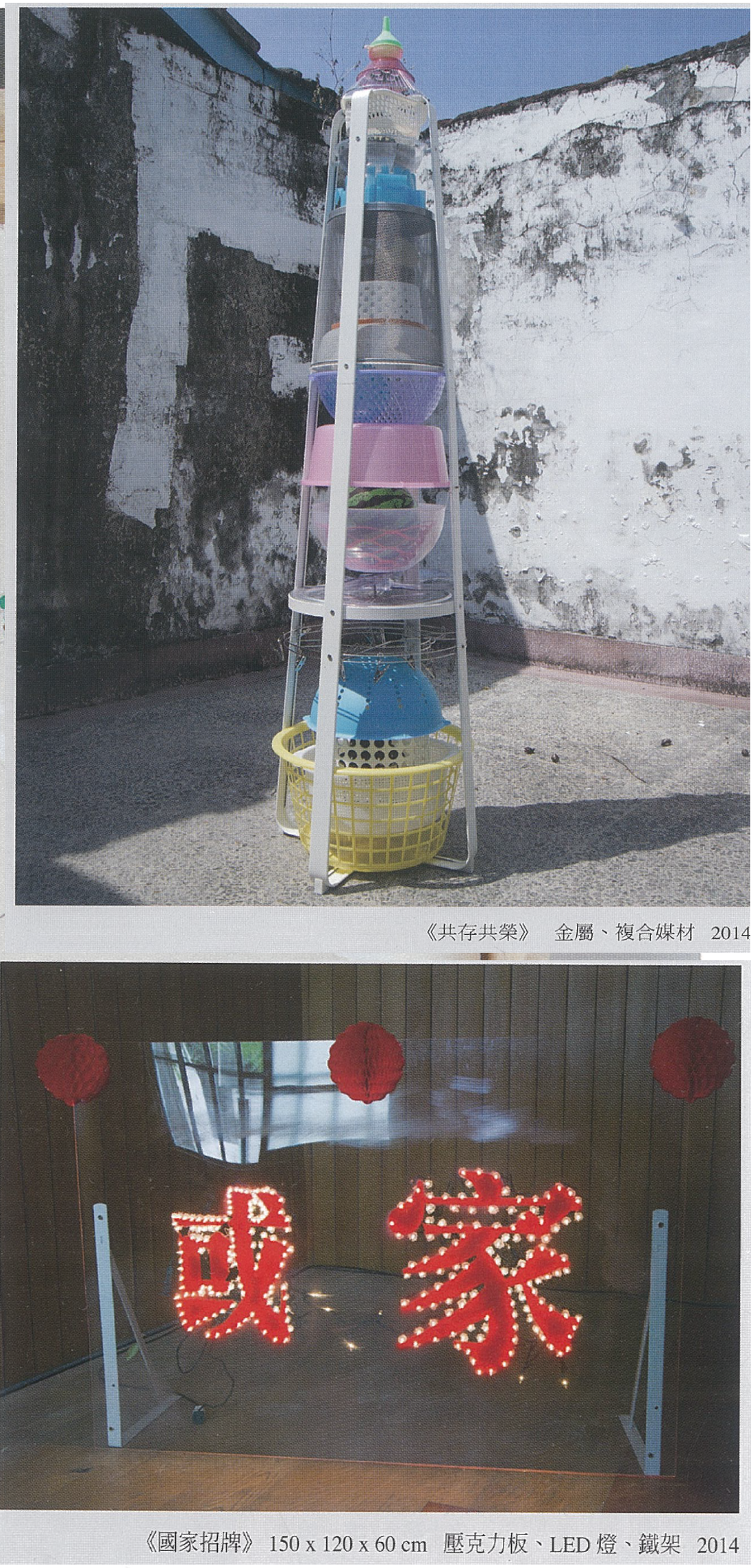 五十多年前,國軍和眷屬分批移駐於臺灣各地,產生了獨有的眷村文化。那個時代物資缺乏,生活是人與環境互相磨合、互相戰鬥的過程,湊合、克難的精神體現了當時人們生活智慧,手製、拼奏的物品是歷史的縮影。在中壢馬祖新村園區的17號展間可以看出藝術家鄧欣榮使用工作生產的現成物,進行再製造與重新組構。創作者認為「物」是生活的體現,透過「物」的再製、自我生產,回應當時的時代精神,也呈現此刻的時代與生存狀態,展覽品除了在室內展出外,戶外空間的作品配合光影的變化更能展現時間與空間的關係。作者擅長以複合媒材、現成物進行解構與重組的鄧欣榮,在「生存指南」展覽中,挑選許多具有時代代表的器物做為創作材料,試圖帶領觀賞者重回舊時年代,勾勒那個當年面對國與家,得與失之間的心理狀態。