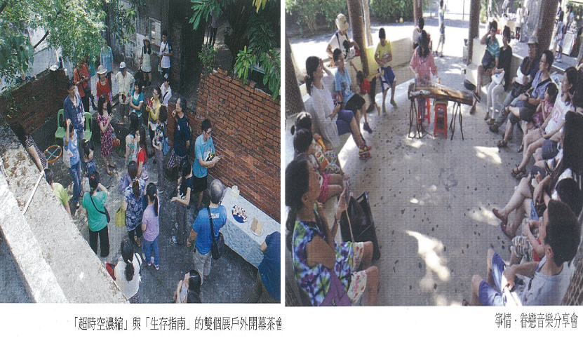 民眾參與之交流展演執行內容有助於提升整體公共空間視覺景觀或公共設施美感特質,促進在地文創產業發展。以「展演─體驗─平台」的方式,對視覺、表演、生活體驗等多種微型文創工作者特別策劃,以舊房舍為創意的展演舞台。每月邀請不同空間屬性的文化創作者在新時代與舊空間中交流、對話,激發創新思考並累積眷村空間文化與記憶的文創能量。馬祖新村17、18號空間透過藝術家郭弘坤的「超時空濃縮」與鄧欣榮的「生存指南」個人展覽,為馬祖新村量身創作展開新舊時空的對話。「超時空濃縮」強調藝術作品的產出,並再現內化的十九、二十世紀,歷史不斷的堆疊,眷村文化屬於海島臺灣的生活史,同時也是累積的過程,透過二十一世紀政治、經濟與生活的再發現,眷村文化依循文化脈絡進而得到新生。
