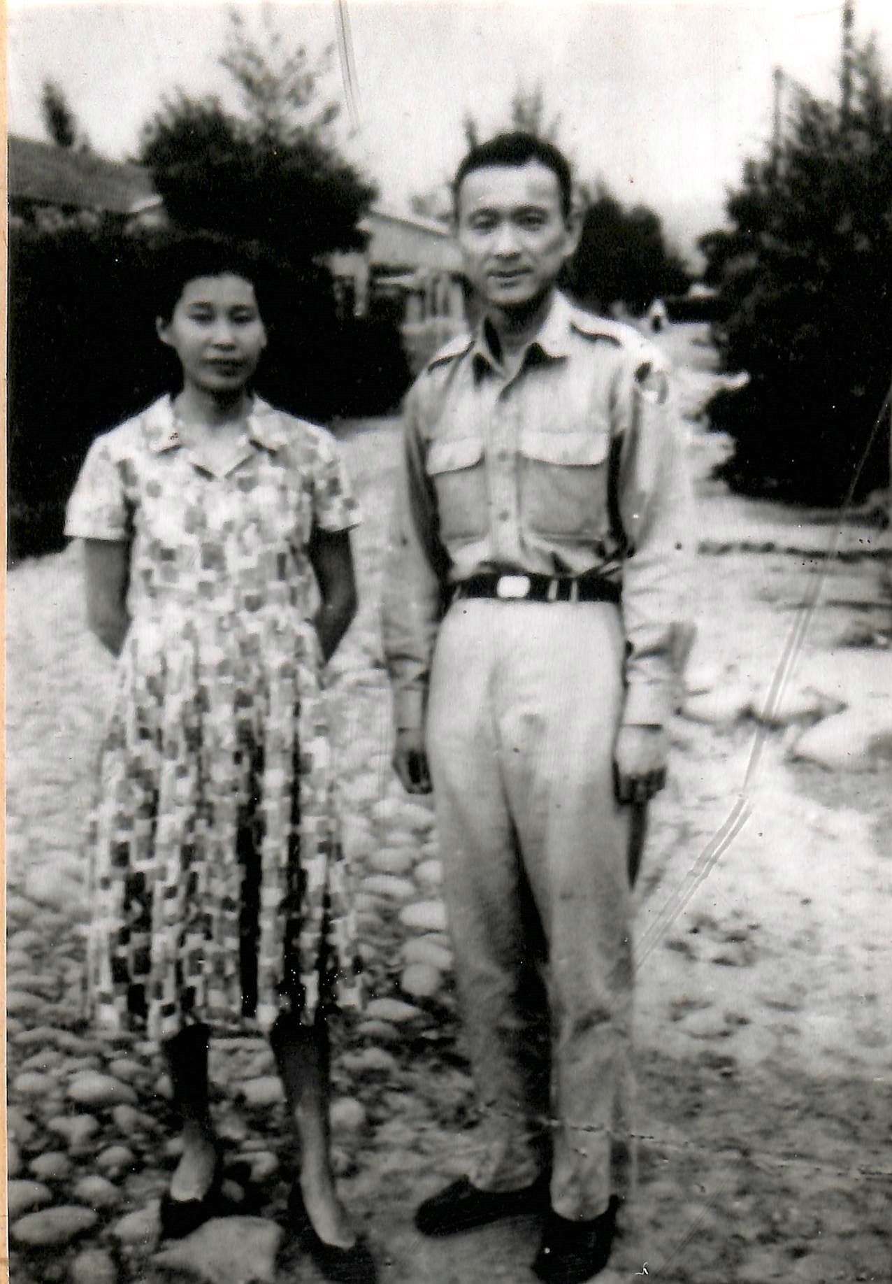此為大溪僑愛新村原眷戶丁策遠提供大溪區僑愛社區發展協會,題名〈房舍外〉的照片。 僑愛新村,民國46年(1957)建,由總統夫人蔣宋美齡所領導的中華婦女反共抗俄聯合會號召菲律賓華僑所捐建,故名。建村頭幾年,荒蕪一片,晴天塵土飛楊,雨天寸步難行,後來鋪為鵝卵石路,家家戶戶圍籬笆,種些花草,景觀逐漸改善。之後改鋪為柏油路,現在大概已沒多少人有過下雨出門,回家時鞋底下總是厚重爛泥的經驗。照片中的丁精章、丁袁雅茹夫婦站立所在即為改善後的鵝卵石路。 民國96年(2007),僑愛社區發展協會將其收錄在2007桃園眷村文化節出版的《僑愛新村建村50週年慶紀念冊》中。
