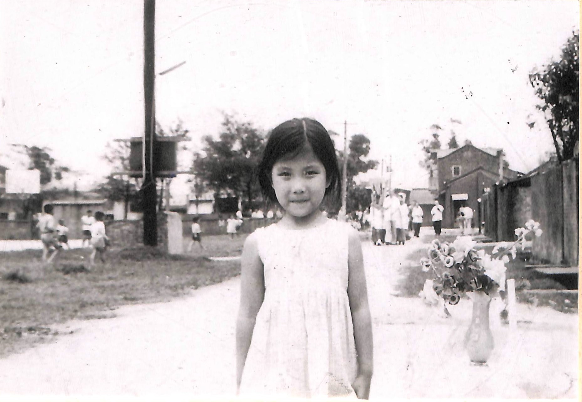 此為大溪僑愛新村原眷戶江寶珍提供桃園市大溪區僑愛社區發展協會,題名〈宗教慶典〉的照片,約拍攝於民國56年(1967)。 從這張的照片可見小女孩右邊的桌子上慎重地布置著簡單的香燭和花瓶,後面是習稱「僑愛天主堂」的法蒂瑪聖母堂的一群教友正在舉辦聖母態像之遊行,並恭請聖母到教友家中接受獻花,教友們恭唸《玫瑰經》(Rosarium Virginis Mariae),同時舉行家庭祈禱等活動。青澀的小女孩身穿小洋裝,抿著嘴唇等待遊行隊伍。 民國96年(2007),僑愛社區發展協會將其收錄在2007桃園眷村文化節出版的《僑愛新村建村50週年慶紀念冊》中。