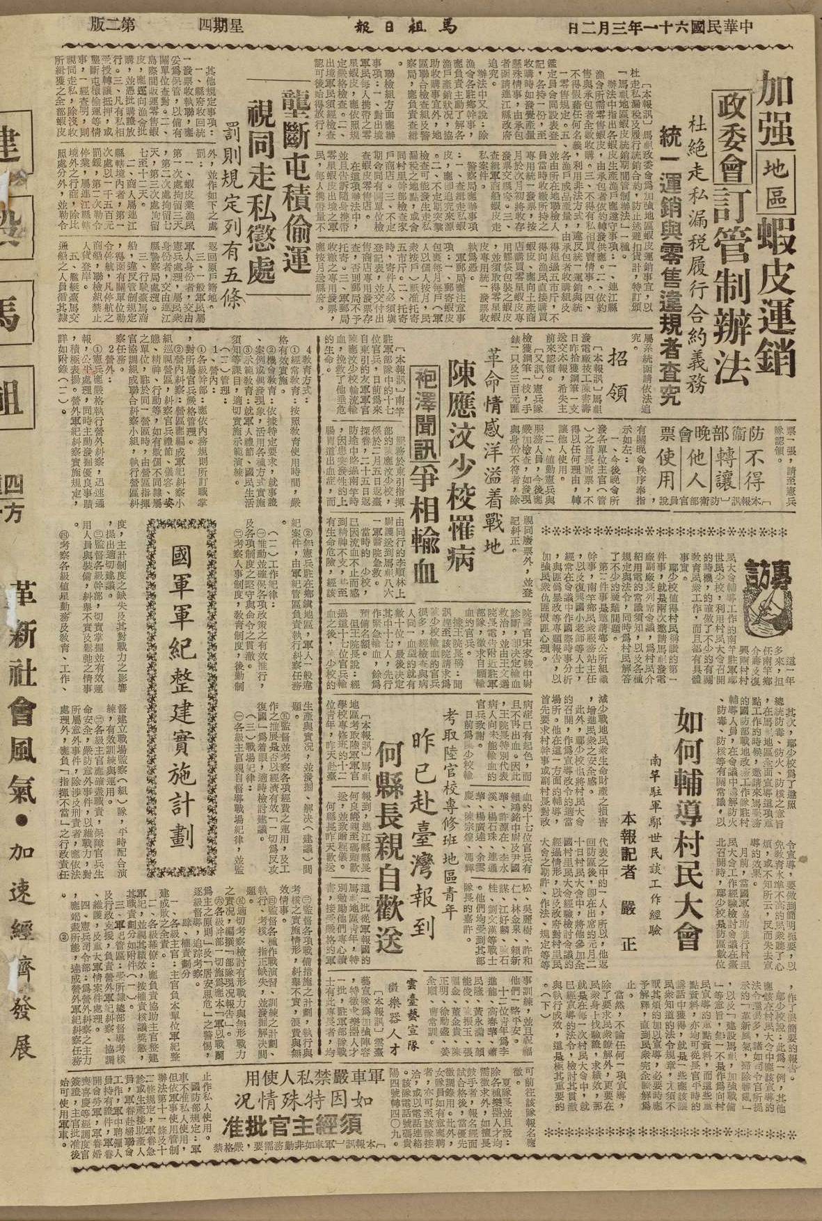 據《馬祖日報》61年3月2日報導,辦法要點如下:「 ◎馬祖漁戶 一、連江縣漁會所需零售蝦皮,由承包者依約轉發供應。 二、依約售與承包者全數收購。 三、不得有私相買賣情事。 四、不得假藉任何名義,利用非法方式,違反統一運銷與統一零售規定。 五、各漁戶成品產量,由承包者收購組及鑒定員會同設表登記,各持一份,至收購時如發覺產量懸殊情事,由承包者函請連江縣政府追究。 除漁會各駐鄉幹事,應負責主動瞭解各漁戶產銷狀況。協助收購事宜外,地區聯合檢查組及警察局,應負責查緝。◎聯檢組方面應辦事項: 一、對出境軍民每人攜帶之零星蝦皮,應依照規定嚴格檢查。 二、出境軍民須經檢查認可後始得放行,並由所在地聯檢人員當時收繳所持之專用統一發票,按月於次月初將收存發票交縣府。 三、查緝軍商船蝦皮走私案件。 四、隨身攜帶零星蝦皮出境之軍民,每人攜帶量不得超過五市斤,不得向漁民直接購買蝦皮、應向土產商店購買零星蝦皮專用膠袋包裝之蝦皮,并須取得零星蝦皮專用統一發票收執。 ◎警察局應辦事項: 一、查緝走私蝦皮,應即追究來源。 二、不定期突擊檢查可能發生走私漏稅之地點,或會同村裏幹部檢查家戶商店。 三、不定期會同有關單位檢查蝦皮零售店。 ◎軍郵局應注意事項: 一、郵寄蝦皮包裹每月每戶(軍人以個人按月,民眾按戶)祇准托寄五市斤。 二、托寄時,寄件人必須填登記表,并交付出售商店專用發票存查,否則郵局不予托寄。 三、軍郵局收繳之專用發票,應按月送縣府。」