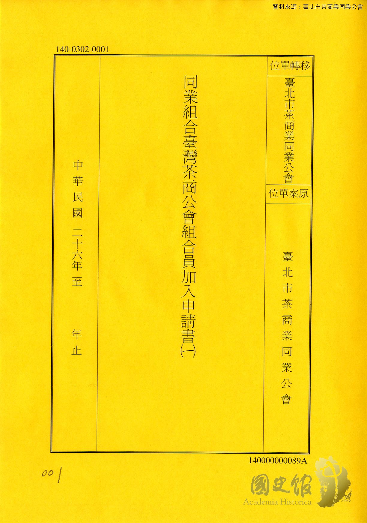 同業組合臺灣茶商公會組合員加入申請書(一)