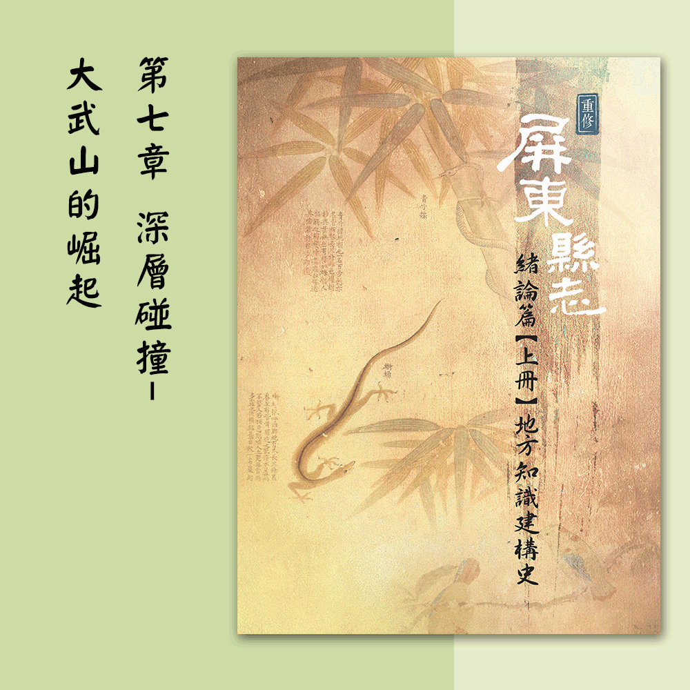 ![《重修屏東縣志:緒論篇[上冊]地方知識建構史》〈第七章 大武山的崛起〉](https://dcm.s3.hicloud.net.tw/h_upload/collection/2019-12-19/f841bd8f-76f9-4fe2-801c-8c7463df1b5a/重修屏東縣志:緒論篇上冊 地方知識建構史 第七章 深層碰撞-大武山的崛起.gif)