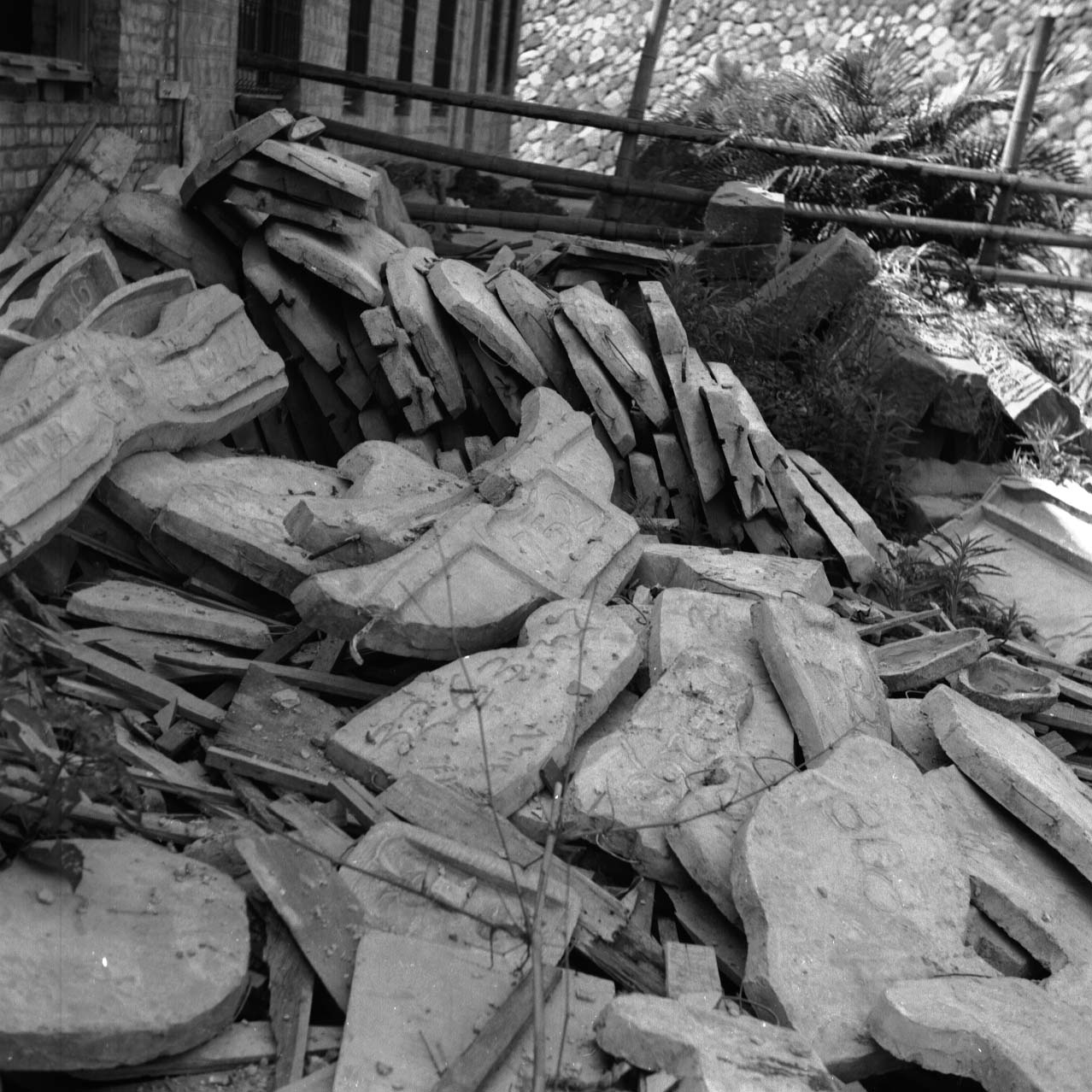製作北投關帝廟時,郭氏堆花匠師團隊所使用之堆花模。該堆花模為兩片一合,為水泥材質之模具,在其中灌漿之後待其固化,再啟開模具,修整細部後進行彩繪或安裝。