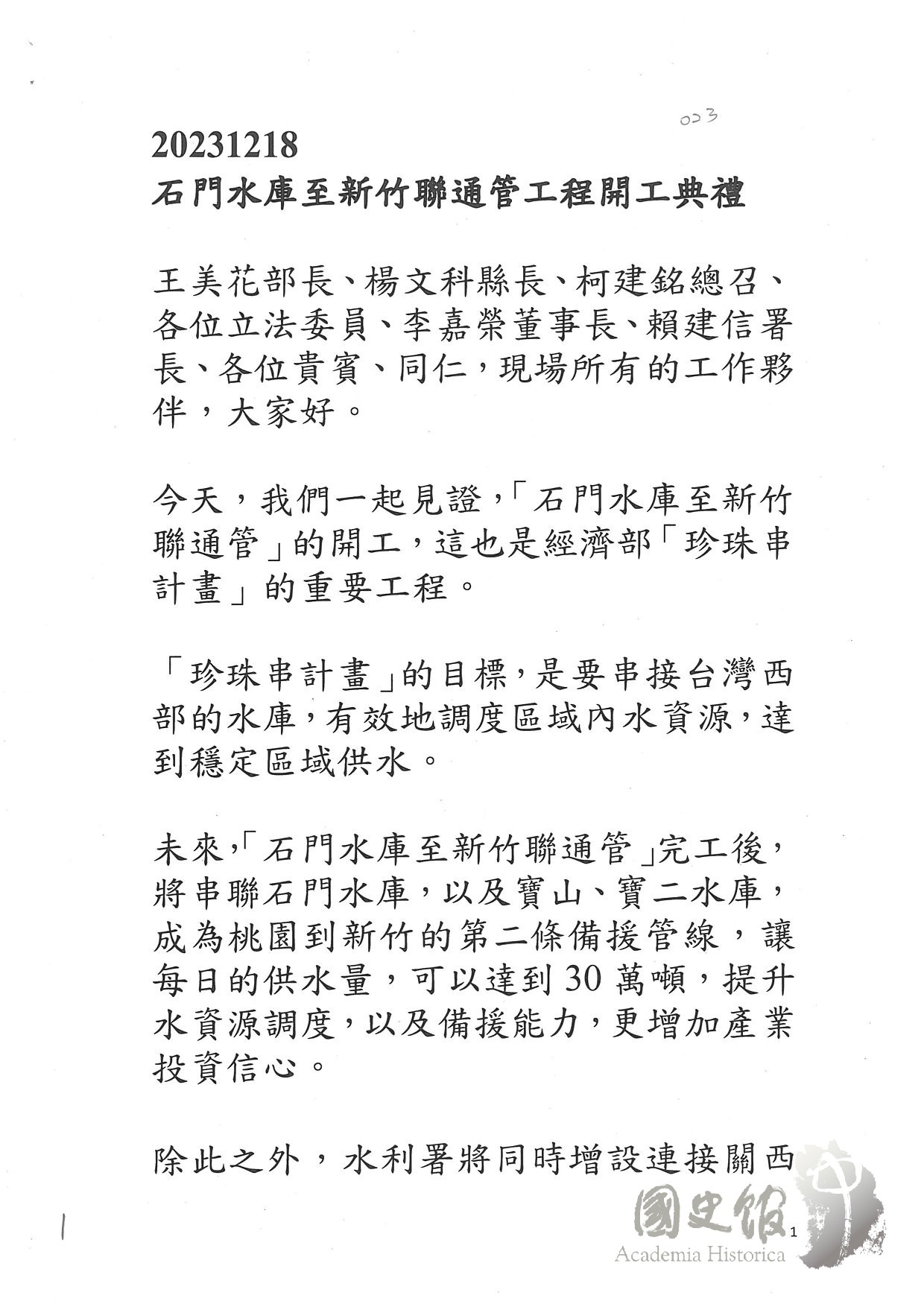 總統蔡英文出席石門水庫至新竹聯通管工程開工典禮