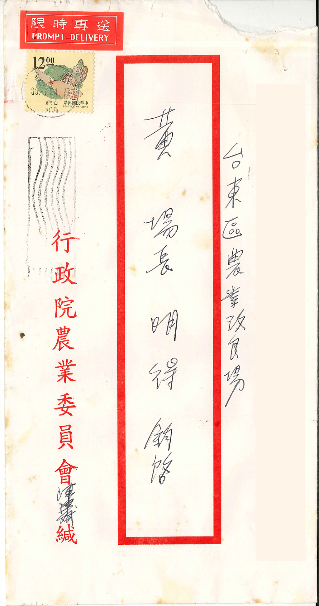 此信件為2000年李興進收到場長諭請回覆,從日本來詢問五葉參茶與魚腥草茶相關問題之信。 陳建斌先生將台東區改良場場長黃明得給予之「五葉參茶」與「魚腥草茶」轉贈予其日籍學長池田穗高先生,池田穗高品飲後對於兩款茶十分有興趣,甚至興起於日本推廣之念,因此對兩款茶提出三個問題:1. 兩項產品日文名稱。2. 有否相關藥效或功能資料。3. 有否微生物檢查分析資料。此些問題爾後轉交李興進回覆,接洽後續推廣事宜。 「李興進」出生民國38年,台灣光復初期政府來台時期。曾任職台東區農業改良場-副研究員兼課長,在職期間進修並取得國立屏東科技大學熱帶農業與國際合作研究所碩士學位。現為御元堂生技董事長,更是台東應用植物園創辦靈魂人物。因長年鑽研且致力於藥用植物生活應用與市場化,於2000年獲得第24屆國家十大傑出農業專家。並於任職台東改良場期間,開始藥用植物各項試驗研究,編印目錄之累積種類共150餘科700餘種,亦積極推廣藥用植物相關活動,更將栽培技術研究成果轉於民間量產販售,為臺灣藥用植物相關發展奠下深厚基礎。
