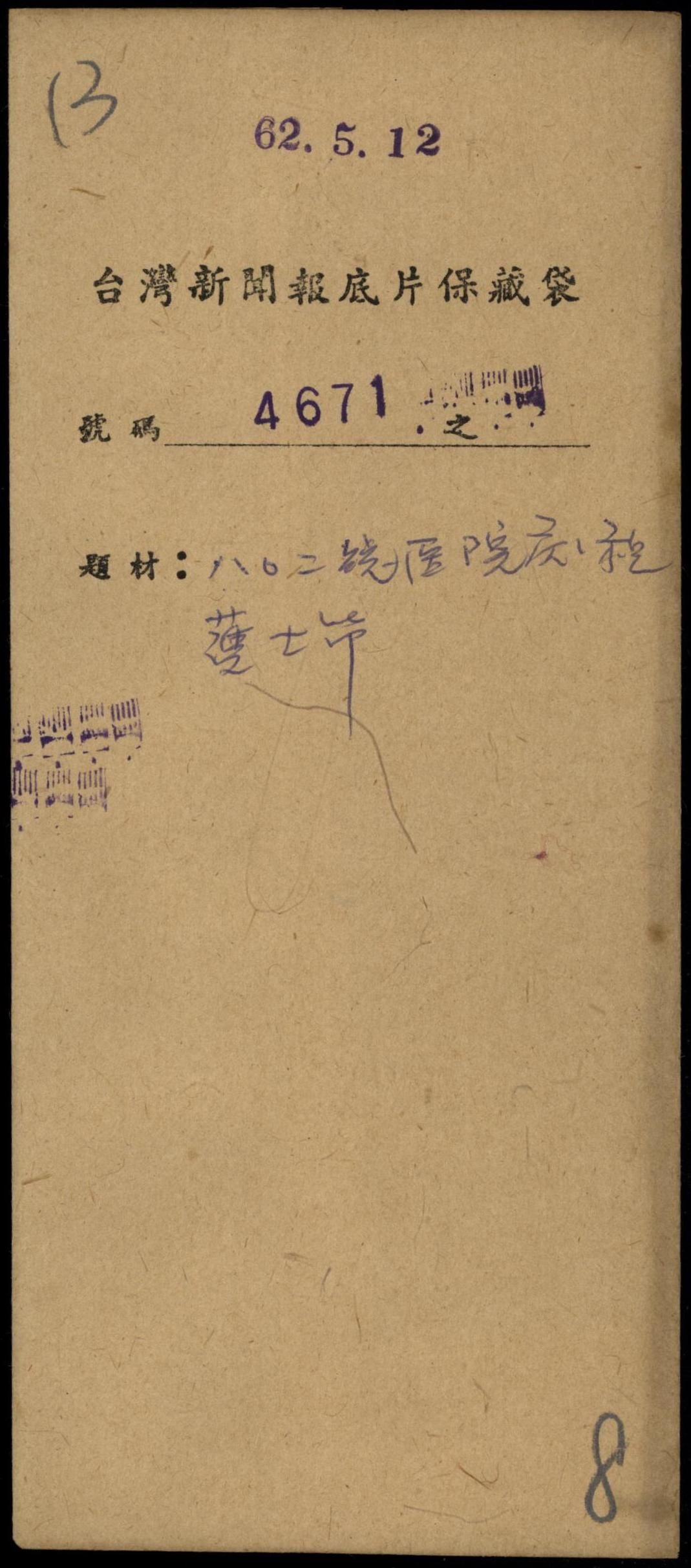 臺灣新聞報底片民國六十二年(三)