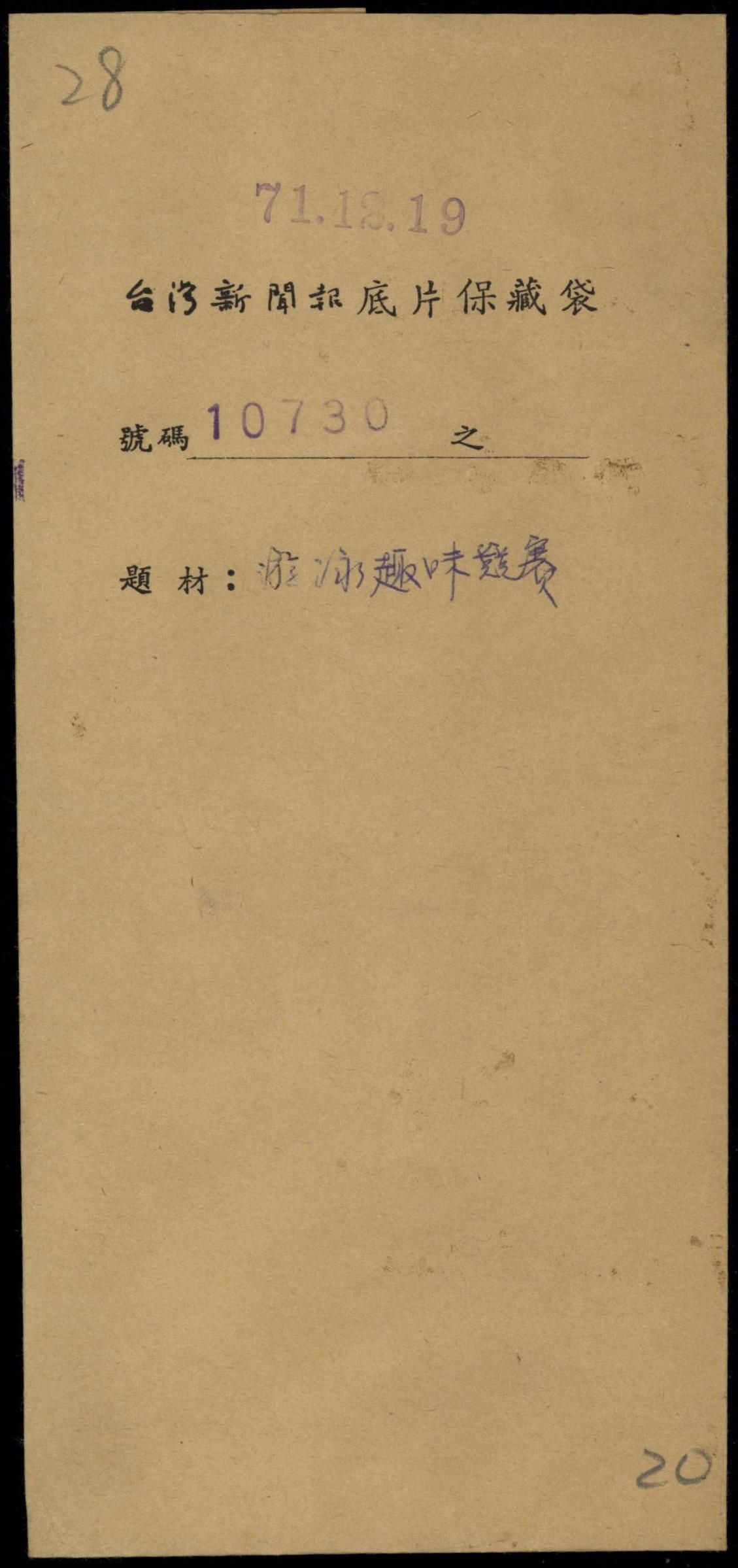 高雄市第一屆游泳趣味競賽比賽於三民游泳池舉行,進行盲人推舟、長人競走、長人游泳接力等項目比賽