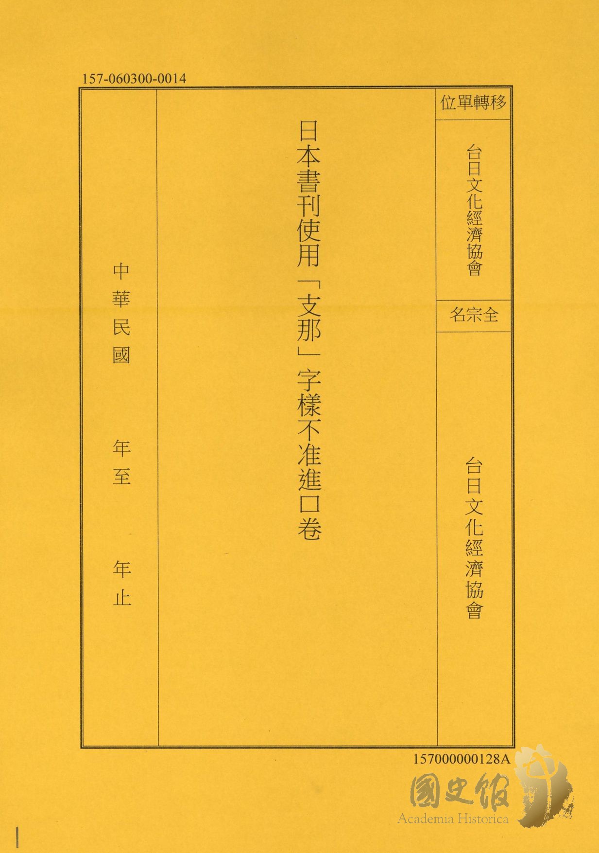 臺灣省政府及中央委員會第四組分函以日文書刊使用支那稱謂不予進口並向日本文化界反映此項意見