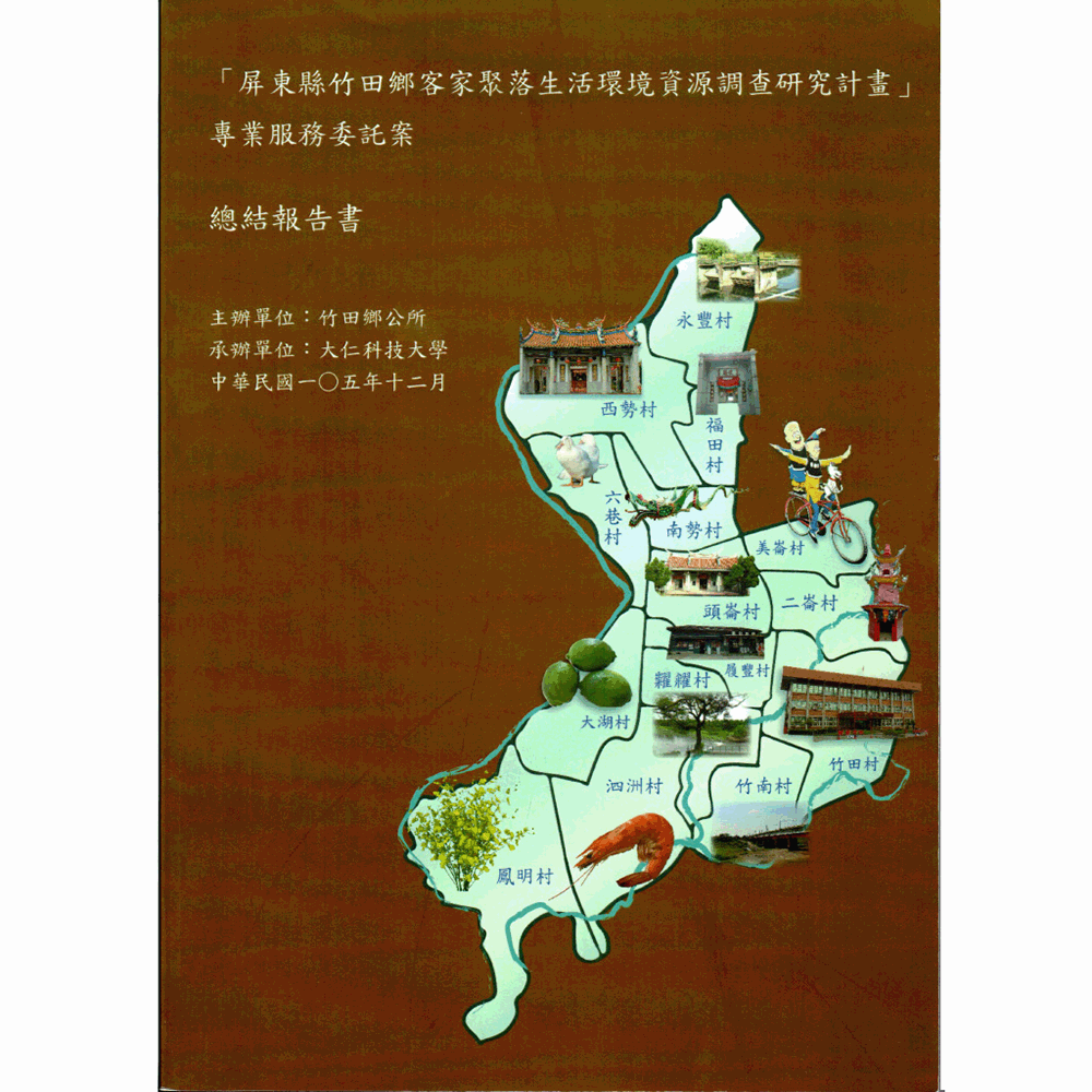 竹田鄉位於六堆客家地區的中心位置乃為中堆,因地處優勢,為六堆先民最早遷入移民墾殖之初地。直到清末之前,竹田鄉都是六堆中較為發達的地區,具舉足輕重的影響。因此,過去竹田鄉是六堆政商經濟發展中心,承載著數百年來客家歷史文化淵源的命脈,若缺乏詳細文史資料紀錄,無法讓到訪者進一步了解竹田鄉客家文化的內涵,甚為可惜。有鑑於此,竹田鄉客家生活文化之保存與振興,有其必要與重要性,需要政府部門挹注經費予以修繕整建,以及當地民眾共同維護,才能保護這些珍貴的客家文化資產,並且凝聚客家精神之向心力,讓客家文化資產得以永存。本文主要針對竹田鄉進行客庄整體資源調查,並將未發掘之潛力點一一指出,建立「竹田鄉客庄文化暨產業廊帶」及「南勢村百年伯公客庄文化廊帶」並建置「履豐村水圳客庄文化講古公園」、「永豐村縣官埤水圳公園」及「竹田區域檸檬產業園」,將來與在地產業、新興產業串聯,發展竹田客庄的景點及特色產業,活絡本鄉客庄脈絡,提升居民生活品質,傳承永存客家文化資產。