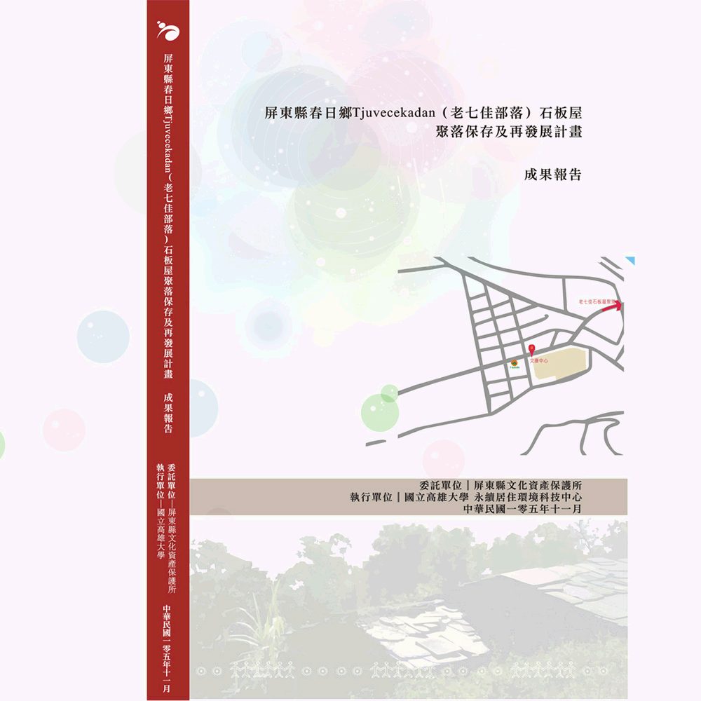 排灣族為臺灣南部最重要的原住民族群之一,孕育及富含豐富的文化傳承之外,更具備獨特的居住文化,其中以春日鄉的Tjuvecekadan(老七佳部落)保存了大量的石板屋最具特色。排灣族的石板屋因應其特殊之自然地理屬性、環境生態條件,在不同的時空背景之下,其構造型式、工法、功能及變遷之行為,同時反應人文及歷史的發展脈絡,在文化資產保留的項目中,有其獨特的重要性。Tjuvecekadan(老七佳部落)雖然居民遷居至新社區,但是目前完整的石板屋約50間,且部落居民仍保有最傳統的文化特色,所以Tjuvecekadan(老七佳部落)是在臺灣原住民族中保存最具完善、完備石板屋群,亦是為數最多、格局最完整之處。 本文透過對老七佳石板屋聚落範圍歷史發展、自然與人文環境、文化景觀構成與重要文資元素(有形及無形)之基礎調查資料,釐清其歷史生成背景、場域之完整性與區域發展之意義,並就其現有法令彙整及分析,擬定後續保存與管理原則、地區發展及經營計畫。