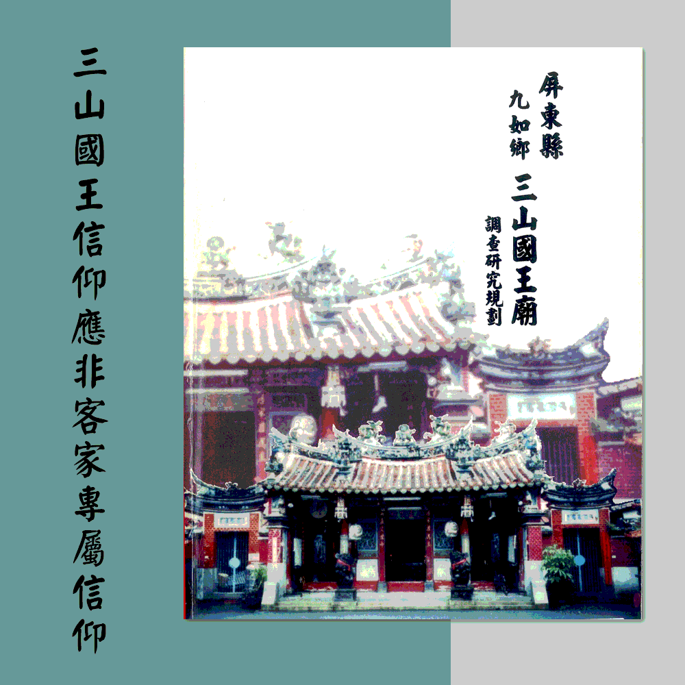 〈屏東縣九如鄉三山國王廟調查研究規劃〉「三山國王信仰應非客家專屬信仰」出版於2003年4月,由黃輝陽撰寫。本文以歷史文獻與調查統計做為證據,企圖破除臺灣過去將三山國王當作客家獨特文化的誤解。此外,本文論述主要採信李國銘老師在屏東文獻第一期所刊登的文章〈三山國王與甌駱人〉之說法,並藉由引用此文章,來論證三山國王信仰應非客家專屬信仰的這個看法。本文內容第一部分引用各家論述,討論三山國王信仰與客家移民之關聯;第二部分則以實地考察結果與專家論述,證明三山國王應非客家專屬信仰的這個論點。