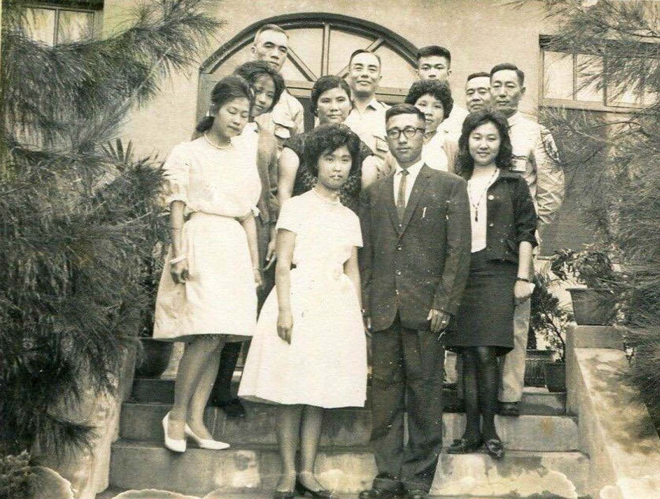 照片中前排著西裝的新郎倌姜玉崙校長與新娘謝柳香老師,姜玉崙右後方是陳麗玉老師,謝柳香後左一為印尼僑生鍾芸蘭老師,在馬祖中心國民學校二年級任教,筆者是她班上的學生。鍾芸蘭老師後方亦為印尼僑生李玉蘭老師,左二著旗袍者為張毓芳老師,左三為馬祖籍的陳泉英老師,其右後方靠邊者為連江縣政府職員聶哲,其左後為中心國校校長朱超。
