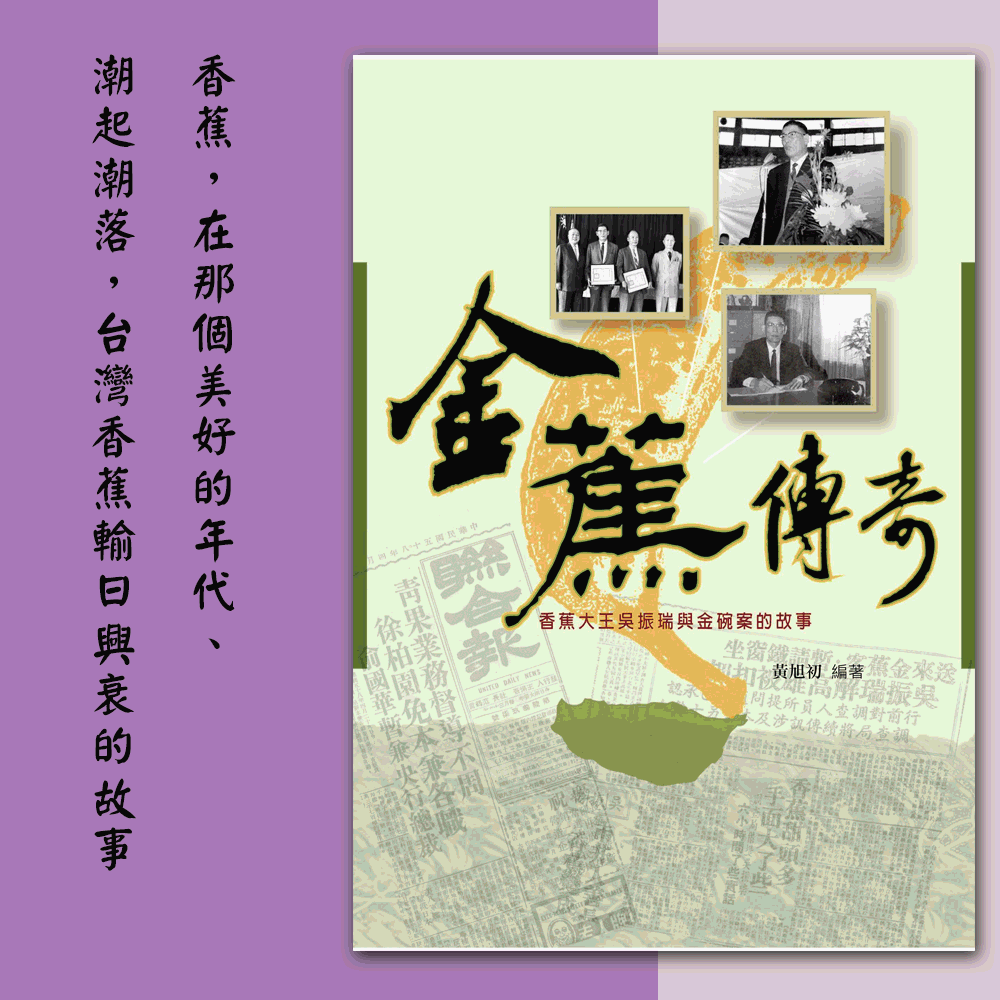 《金蕉傳奇》出版時間為2015年12月,由張旭初撰寫,由屏東縣政府出版。本書透過資料的收集和吳振瑞先生的回憶錄,以及當年涉及蕉案的當事人的口述歷史,重新編寫,期待還原「金碗案」、「剝蕉案」的原貌,也再度感受這位當年臺灣的傳奇人物「香蕉大王」的俠骨風範,同時,重溫人與土地的溫度。本文主要介紹香蕉產業,香蕉曾是旗山最重要的產業。香蕉在1903年(明治36年)首次輸日後,即引起許多日人的喜愛,二次大戰前在臺灣的栽種面積已達2萬2千公頃,而臺灣光復後青果運銷合作社的重組,也在香蕉產銷中扮演重要的運銷角色。1968年,旗山種蕉面積2千7百公頃,占旗山總耕作面積的78%,是南部最重要的香蕉集散地。甚至一度曾是臺灣的王牌水果,在香蕉盛世的年代,香蕉欉遍佈南臺灣的溪床平野,集貨場裝箱好的香蕉會送去高雄港的香蕉碼頭,並輸送至日本,換回來國家的大量外匯。本文包含第一章香蕉,在那個美好的年代;第二章潮起潮落,台灣香蕉輸日興衰的故事。
