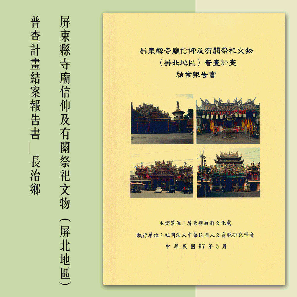 本文主要清查長治鄉的寺廟信仰及有關祭祀文物,其中較重要的包含長興村天后宮、長興村抗日烈士祠、繁華村番仔寮惠迪宮、繁華村義勇恩公廟。