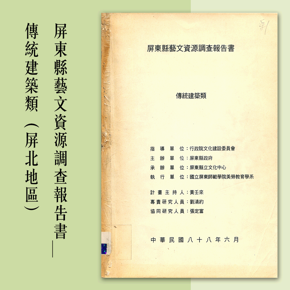 屏東縣轄區有33個市鄕鎭,幅員遼闊,經過實際調查發現,有些古蹟因為年久失修或維修不足,導致剝落風化,有些雖然經過重修但卻破壞原來的外貌。有些已經破壞損毀但卻不見維修復原。大部分的古老建築都已經經歷幾十年甚至百年或更久的年代,尋找維修的建材,數量往往是愈來愈少,或是已經沒有了,只好找尋替代品,有礙於建築原貌的保存,導致古老建築只會減少不會增加。地方耆老對於地方傳統建築的維護非常熱心,甚至有些人士具備深厚的專業素養,極有裨益於傳統建築的保存與藝術文化的永續發展,政府單位應該多加鼓勵與關懷。屏東縣地理環境優越,分布有25個平地漢族的鄕鎭,8個山地鄉的原住民部落,再配合傳統歷史外來文化的影響,顯現多元文化與多元建築的型態。本文針對屏東縣屏北地區共37件傳統建築,包含九如鄉2件、內埔鄉9件、竹田鄉1件、里港鄉8件、長治鄉2件、屏東市5件、高樹鄉1件、萬丹鄉2件、鹽埔鄉4件、麟洛鄉3件,進行調查作業。