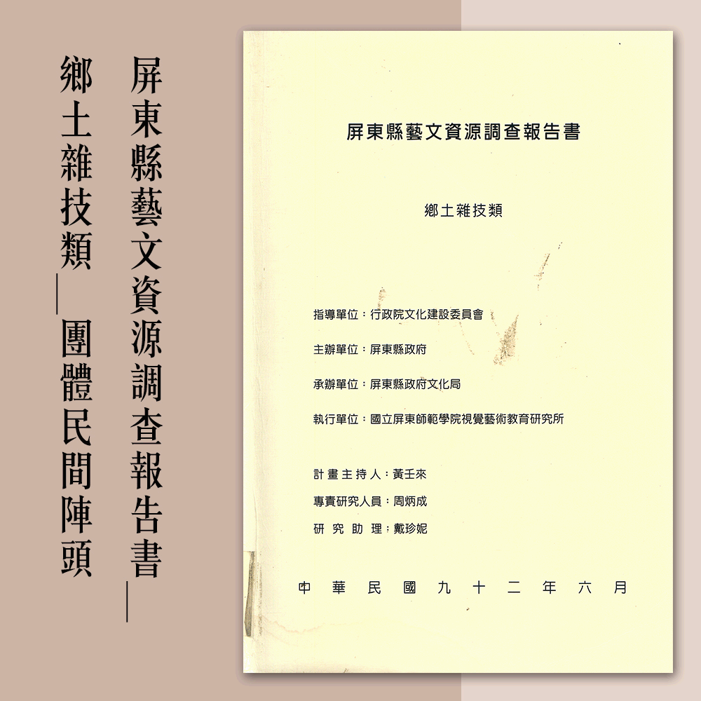 本研究主要是針對屏東縣鄉土雜技藝文資源分佈現況做一槪要性之了解,並對未來可能走向提出建言,俾供屏東縣政府作為研擬屏東縣鄕土雜技發展軌跡與規劃策略之參考。本研究方法以實地訪談為主。訪談時間從2002年10月至2003年4月中旬止,本文針對屏東縣鄕土雜技民間陣頭團體進行調查作業,共64團。鄕土雜技因環境時空演變,目前以學校、社區、協會、學會、體育會與其轄下單項委員會為運作模式,屬校園社團、社區團體,其營運機制與在文化局立案之展演團體不盡相同。從訪談資料中得知,屏東縣鄉土雜技發展正踩在關鍵點上。因此必須藉由鄉土雜技發展座談會的召開來凝聚共識並提出良方,此外政府和民間也需齊心協力才能共創未來。