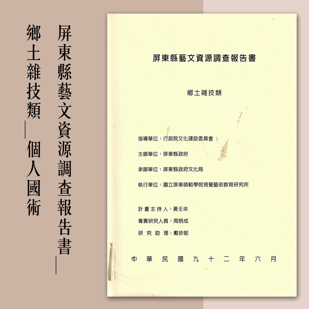 本研究主要是針對屏東縣鄉土雜技藝文資源分佈現況做一槪要性之了解,並對未來可能走向提出建言,俾供屏東縣政府作為研擬屏東縣鄕土雜技發展軌跡與規劃策略之參考。本研究方法以實地訪談為主。訪談時間從2002年10月至2003年4月中旬止,本文針對屏東縣鄕土雜技國術個人表演者進行調查作業,包含陳銀珠、黃共田、謝東樺、宋陳麗霞,共4人。鄕土雜技因環境時空演變,目前以學校、社區、協會、學會、體育會與其轄下單項委員會為運作模式,屬校園社團、社區團體,其營運機制與在文化局立案之展演團體不盡相同。從訪談資料中得知,屏東縣鄉土雜技發展正踩在關鍵點上。因此必須藉由鄉土雜技發展座談會的召開來凝聚共識並提出良方,此外政府和民間也需齊心協力才能共創未來。