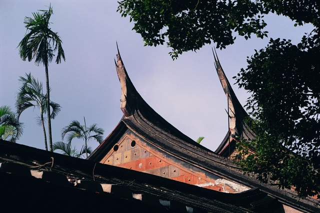 大溪齋明寺主祀觀音菩薩,為大溪最古老的禪寺,方位座東北朝西南,寺前有雙重牆欄,入口立有成對門柱,上題「莊嚴憑法音,圓覺悟禪機」,環境清幽,隔絕塵囂,大有禪寺風雅寧靜的氛圍。 齋明寺創建時原名「福份宮」,是齋教龍華派齋堂。齋教即「在家佛教」,興起於明朝中葉,信眾在家持齋,不需出家。清嘉慶年間齋教大量進入臺灣,同治 12 年(1873),第二代住持黃普瑟整修草庵築堂,改稱齋明堂。大正元年(1912)擴建正殿與兩側廂房,昭和 4 年(1929)廟後興建翠靈塔,供民眾安奉祖先遺骨。昭和 12 年(1937)日本政府進行「宗教整理」,更名為齋明寺,民國 88 年(1999)歸法鼓山門下。 齋明寺原為單進兩護龍三合院式廟宇,後增建為單進四護龍,舊時中庭植草皮,屋頂牆身與一般民居無異,正殿無檐廊為其特色,風貌古樸,與齋教在家持齋修道精神映合。而現今庭院設施與客房、佛堂等現代建築為第七代主持聖嚴法師時期陸續增建,其採用減法、單純與低調的手法,降低禪堂屋簷、運用清水混凝土、迴廊等元素,讓新建築如背景一般,突顯百年古剎的歷史風華,曾獲「2012 臺灣建築獎」首獎殊榮。 齋明堂自始即與大溪地區士紳密切互動,大溪、龍潭的廟宇興廟建醮祭典,都會前來恭請觀音菩薩前往作客。