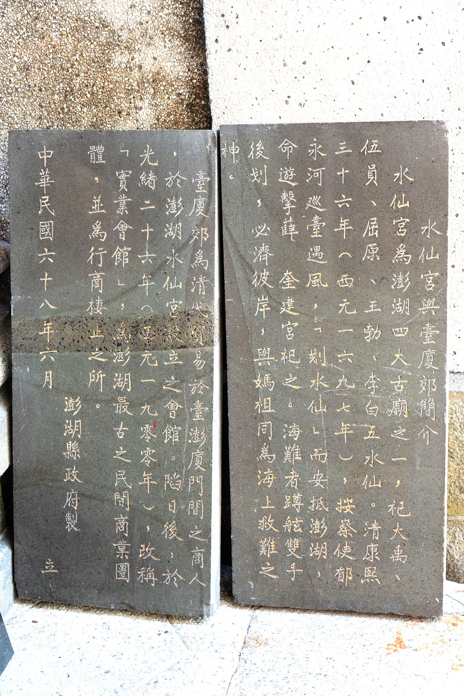 根據乾隆3年(1738)《台灣志略》記載,澎湖的水仙宮是薛奎在康熙35年(1696)所建。照方志記載,薛奎是遼東人,康熙34年(1695)任澎湖水師右營游擊。水仙是大陸長江流域下游與東南沿海浙江一帶的信仰,薛奎的原鄉信仰並未有此信仰。既然如此,那他為何會建水仙宮呢?這似乎與其經歷有關。當時,大陸、澎湖、台灣本島之間的交通已由隔絕再度活絡,兵船、官船、商船絡繹不絕。 在平常的情勢下,來台人員祈求、祭祀主要對象是媽祖。不過,除了媽祖外,他們亦向水仙王禱告,祈求水仙王幫助,海上行船安全。 由於地處海邊,水仙宮每天受海風吹襲,鹽水腐蝕,日積月累,頗有傾頹。乾隆45庚子年(1780)澎湖水師將領招成萬見此,遂即捐錢重修。 光緒元年(1875),馬公水仙宮再次重修。這是由媽宮街商民黃鶴年鳩資主導的。一般認為,當時的水仙宮,已被充為「臺廈郊會所,以為行商棲止之處。」 澎湖的「臺廈郊」,具有下列特色: 1.設有公所,解決貿易紛爭。 2.成員包括販賣五穀、布帛、油酒、香燭等日常應用器具的舖戶。 從現存史料,「臺廈郊」是由澎湖的台郊、廈郊組合而成,其中「台郊」的公號叫「金順利」、「廈郊」公號稱「金長順」。 日治時期,水仙宮主事者及信眾認為廟宇已經「甚形剝蝕,又極湫隘非禮,覩觀不雅,抑且有瀆神靈」,遂於昭和四年(1929)募款重修。 重建完的水仙宮,頗為特別,是融合歐式的建築風格,上下兩層,上層祀神,下層作為「臺廈郊實業會」辦公場所。這樣寺廟格局在日治時期也是獨樹一格,頗為罕見。 民國47 (1958) 年再次重修,在其大殿的供桌,就是當時重修完成,爐下弟子敬送的。水仙宮在民國73 (1984) 年曾做過整修,完工後,做一盛大的建醮。 這幾年水仙宮目前主要的收入是民眾捐的香油錢,且水仙宮每年提撥信徒捐獻的約1/10做社會慈善公益活動。 目前水仙宮的管理人為吳明錚先生,吳明錚對水仙宮務出錢出力,並與宮中委員積極籌畫下列事情: 1.水仙宮每年十月慶典及遶境活動。 2.元宵節慶祝活動。 3.纂修宮志。