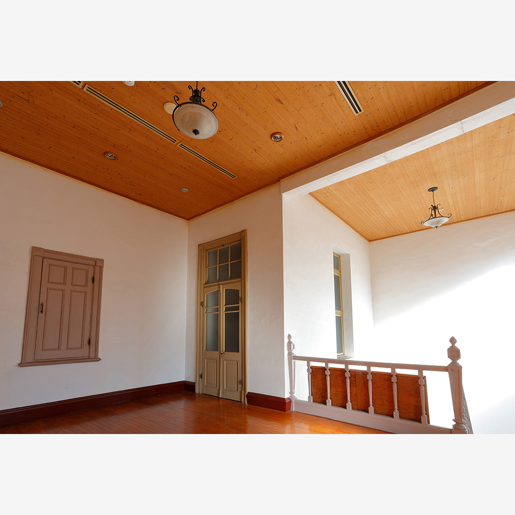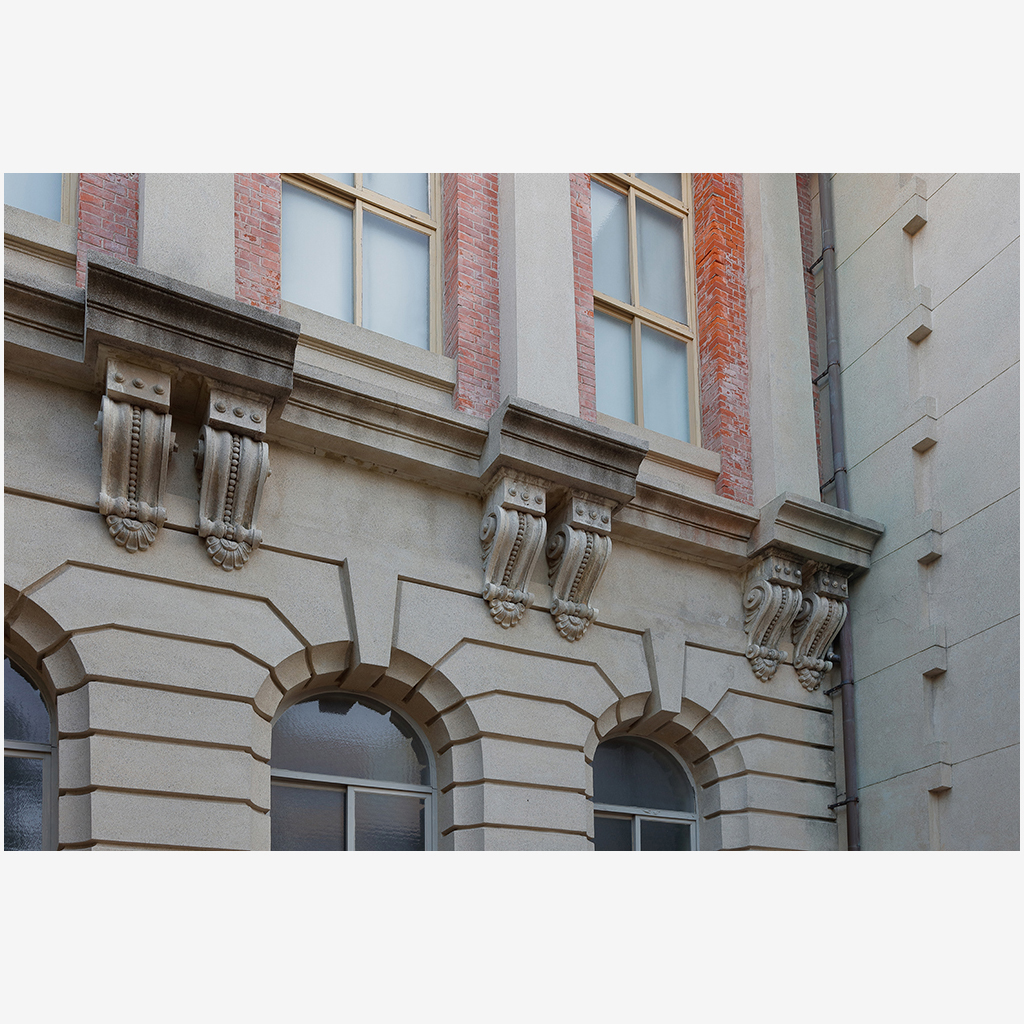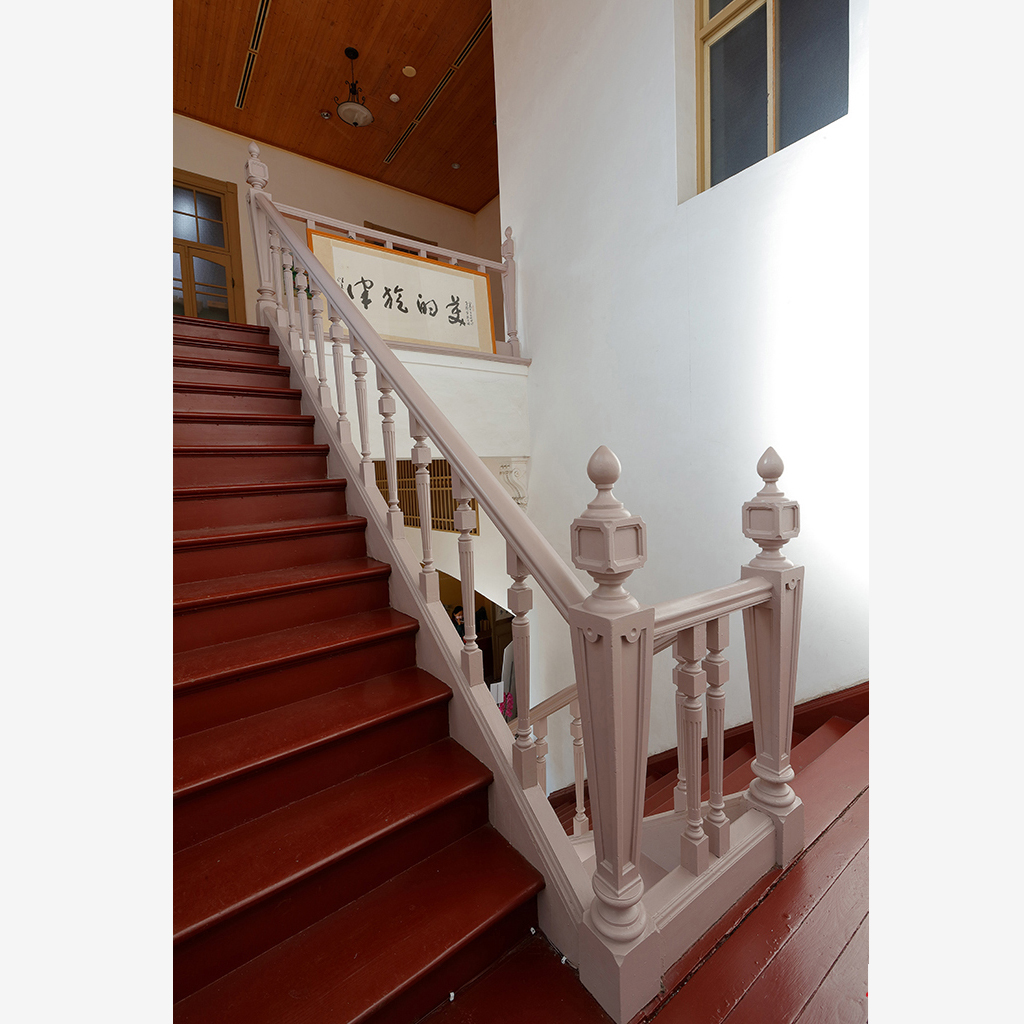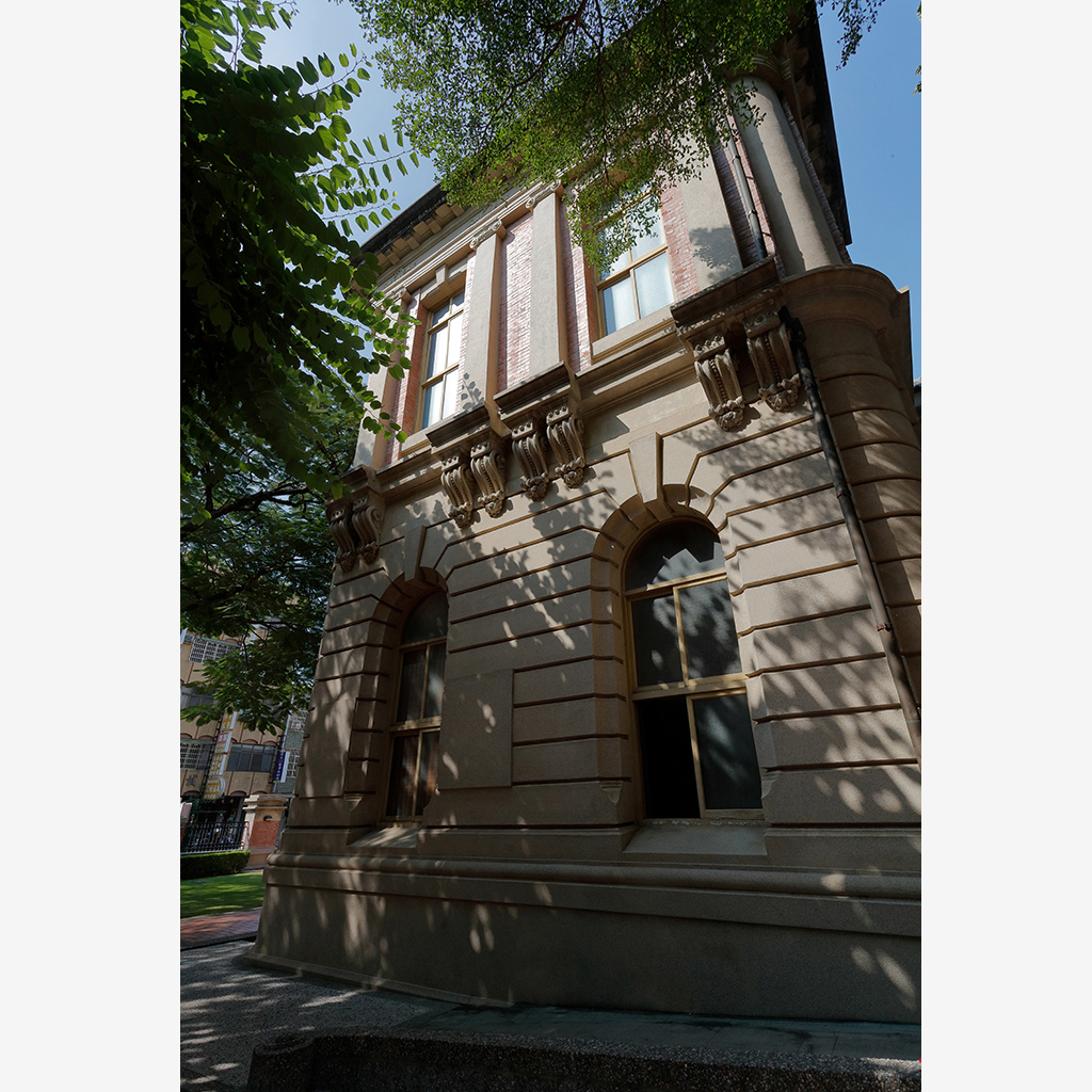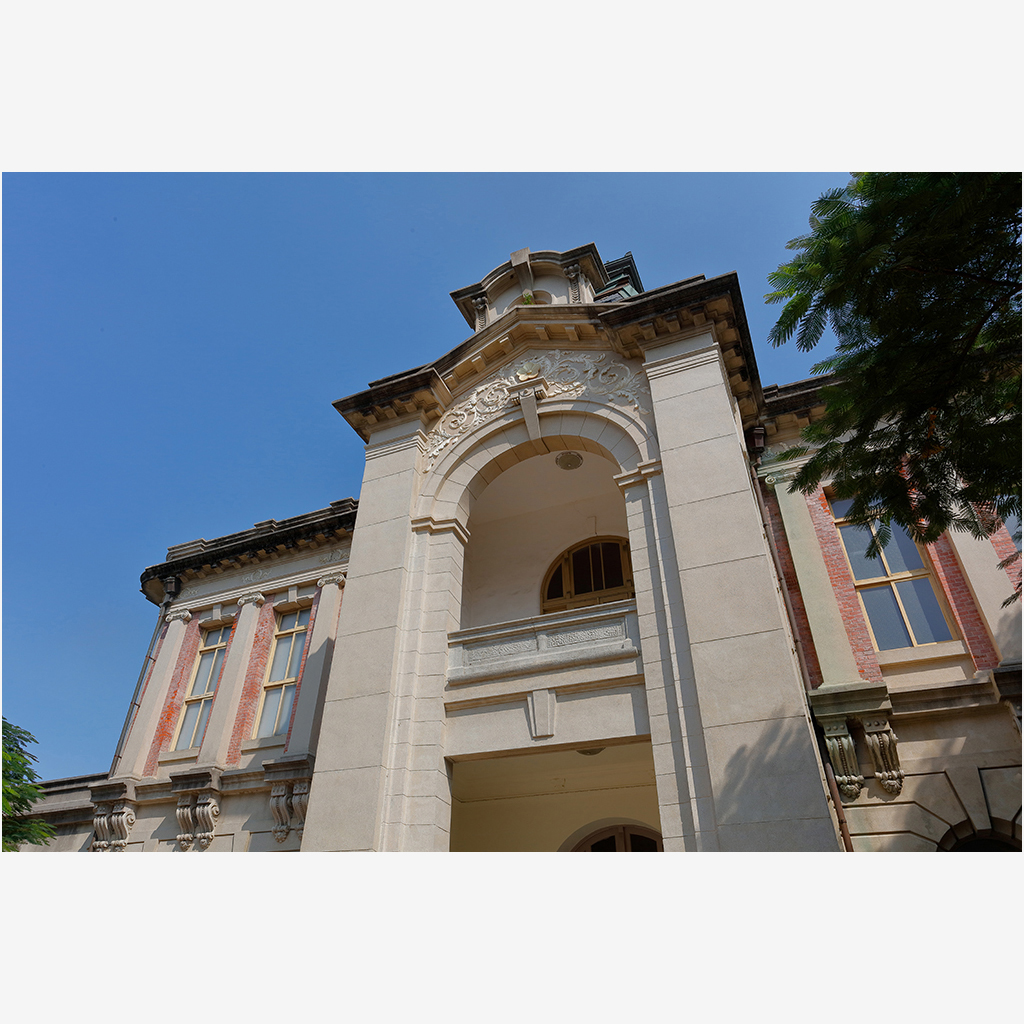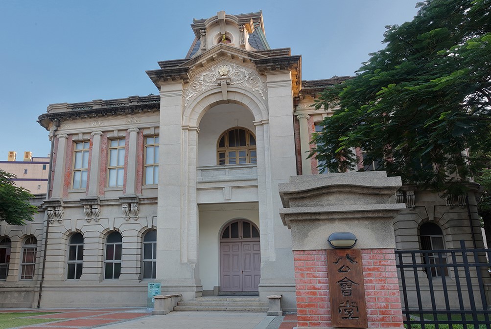 1、1911年建,馬薩頂與愛奧尼克柱之外貌、內木構造牆內有繁複的裝飾浮雕紋樣,為臺灣並不多見建築型態