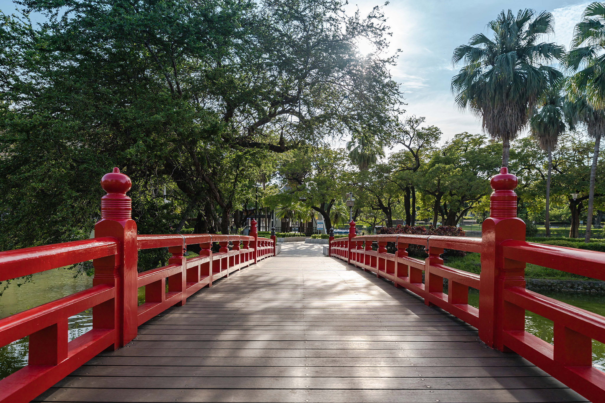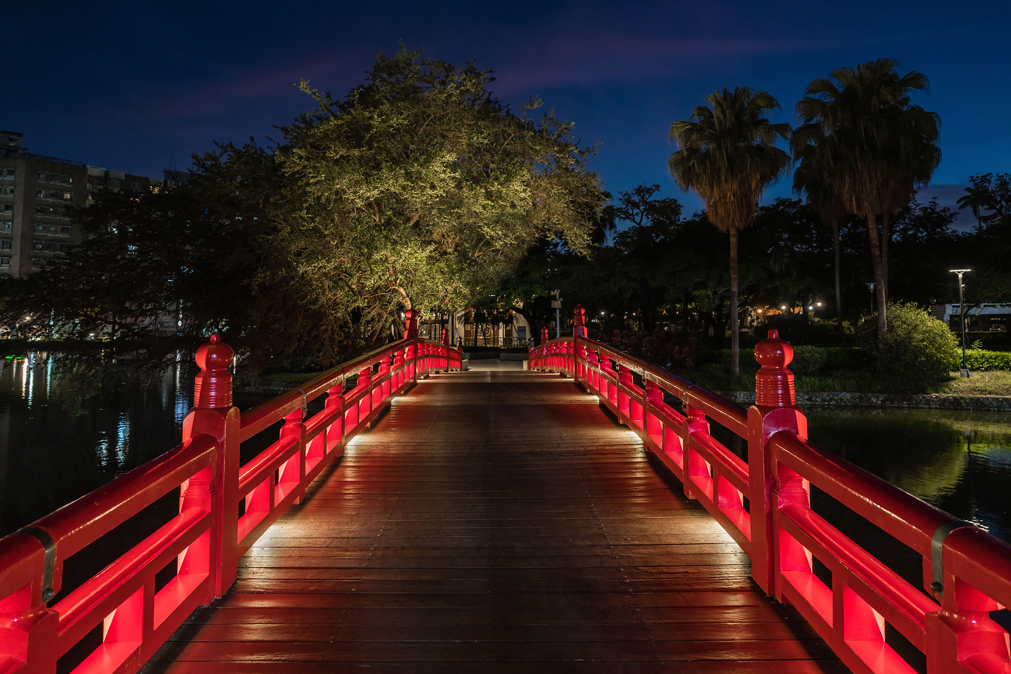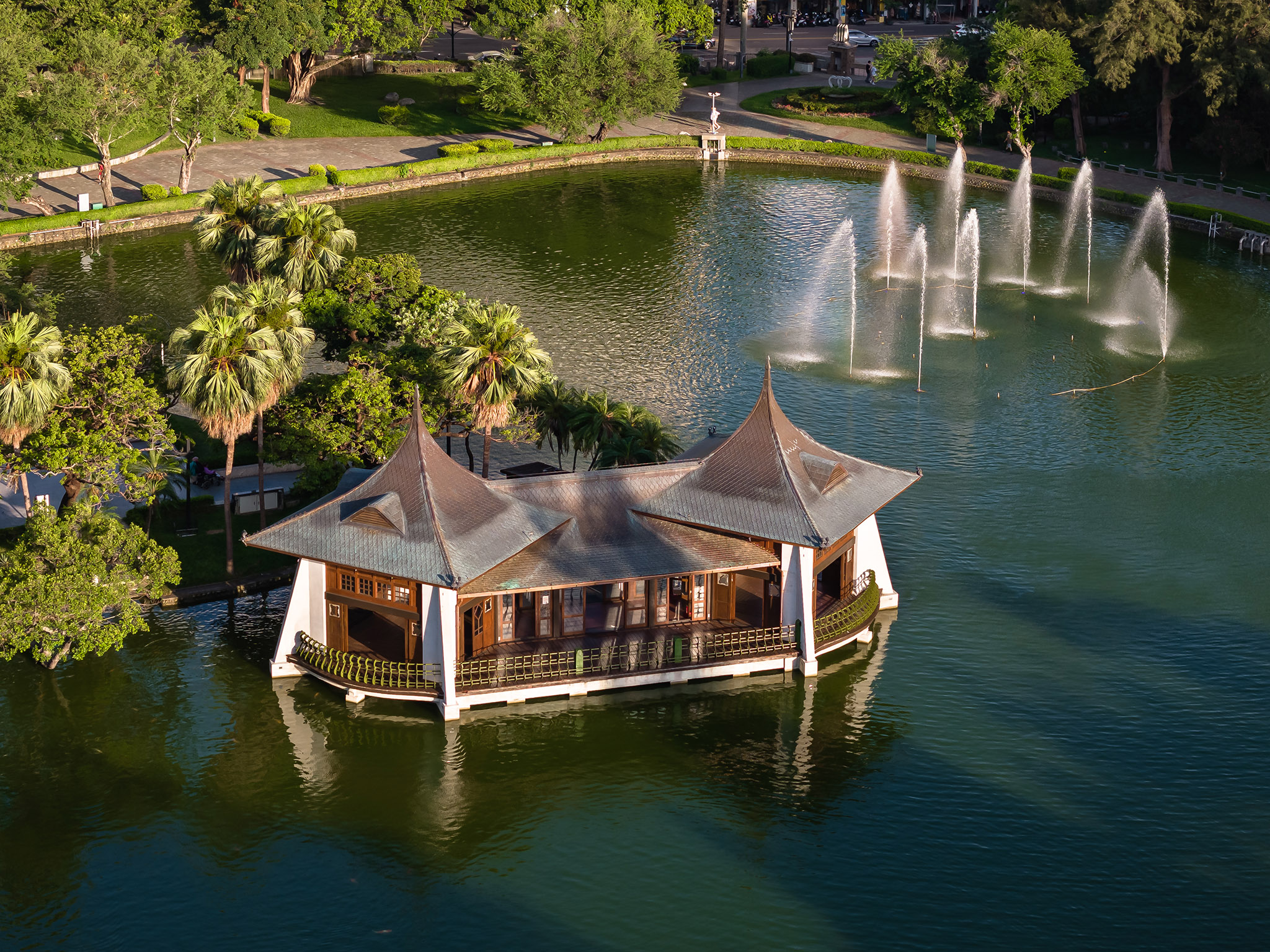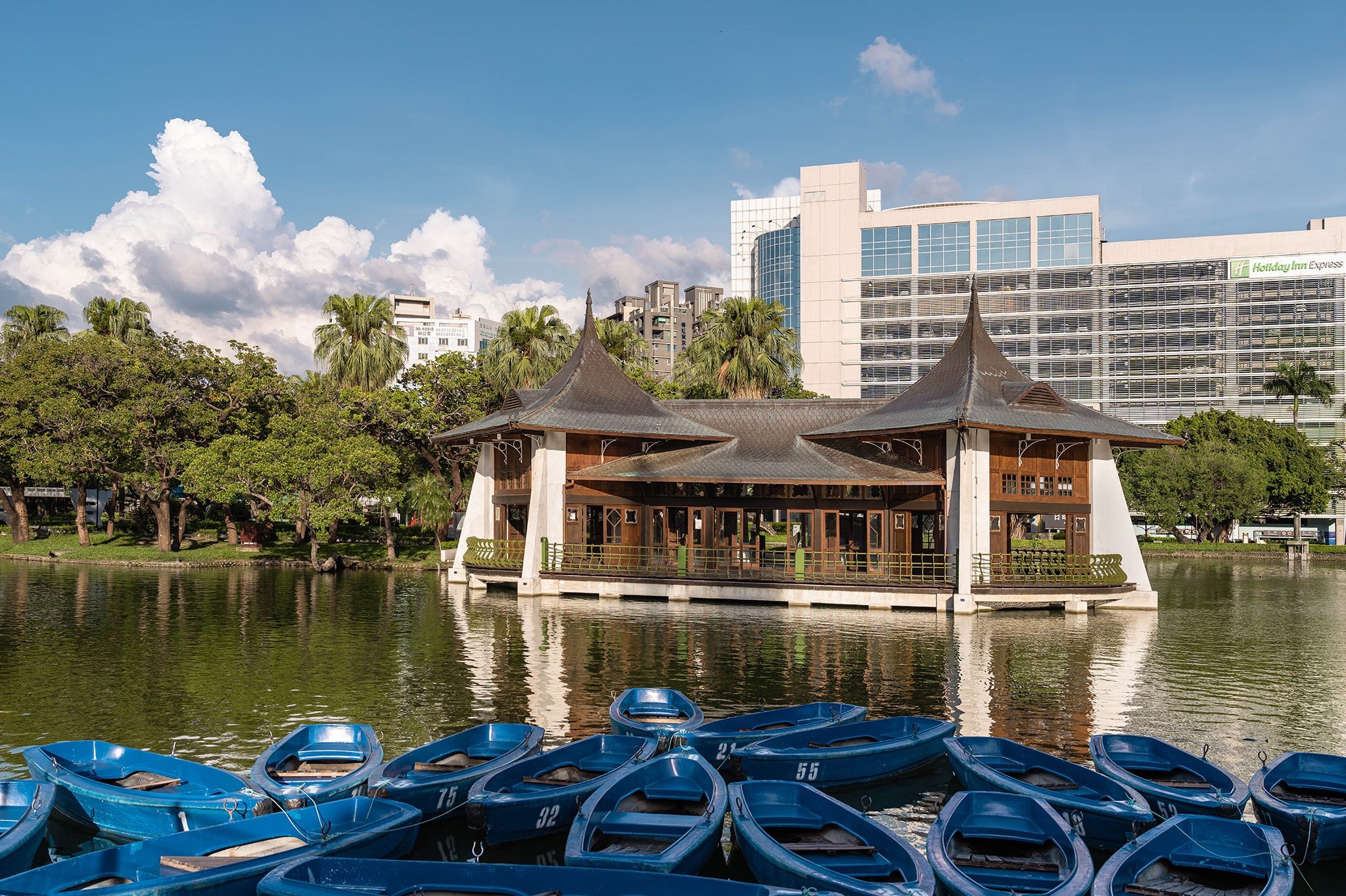 湖心亭所在地為日治明治36年(1903)開園之「臺中公園」,園內原有自然水塘,經人工整修後成池。明治41年(1908)10月為慶祝縱貫鐵路全線通車典禮,於池中建亭,來臺主持通車式的日本閑院宮載仁親王曾於此亭休憩、觀看表演。 戰後臺中公園更名為「中山公園」,池改稱「日月湖」,亭則改稱「湖心亭」。民國88年(1999)市府以湖心亭為縱貫鐵路通車典禮紀念見證,且長期為臺中市的地標,具有無可取代的代表性,指定為市定古蹟。 民國89年(2000)「中山公園」才又改稱「臺中公園」迄今。