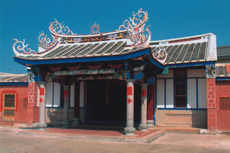 傳統三合院建築形式,且正身前有一拜亭;主要為硬山屋頂;而拜亭為歇山屋頂,建築物軒亭彩繪佛青的顏色非常醒目,另屋頂下有捲草、剪粘、燕尾…等飾物。