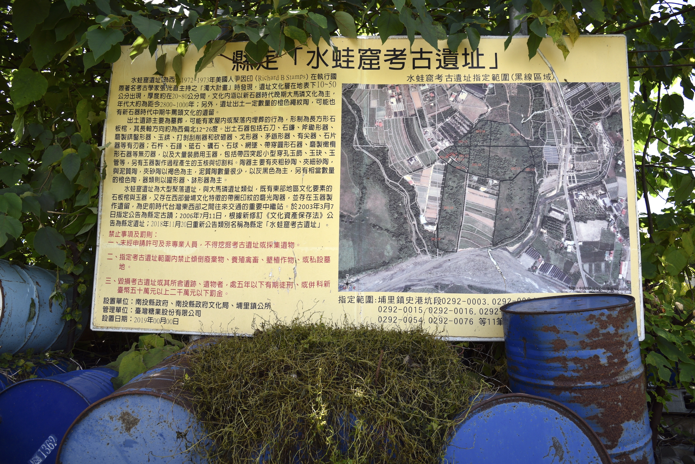 台糖公司租賃給耕農辦理「縣定水蛙窟遺址保土生態園藝栽培暨文化資產利用案」,業經本縣106年12月21日文化資產審議會核定在案,並請本局考古遺址專案人員每月執行巡查監管保護持續追蹤現況。