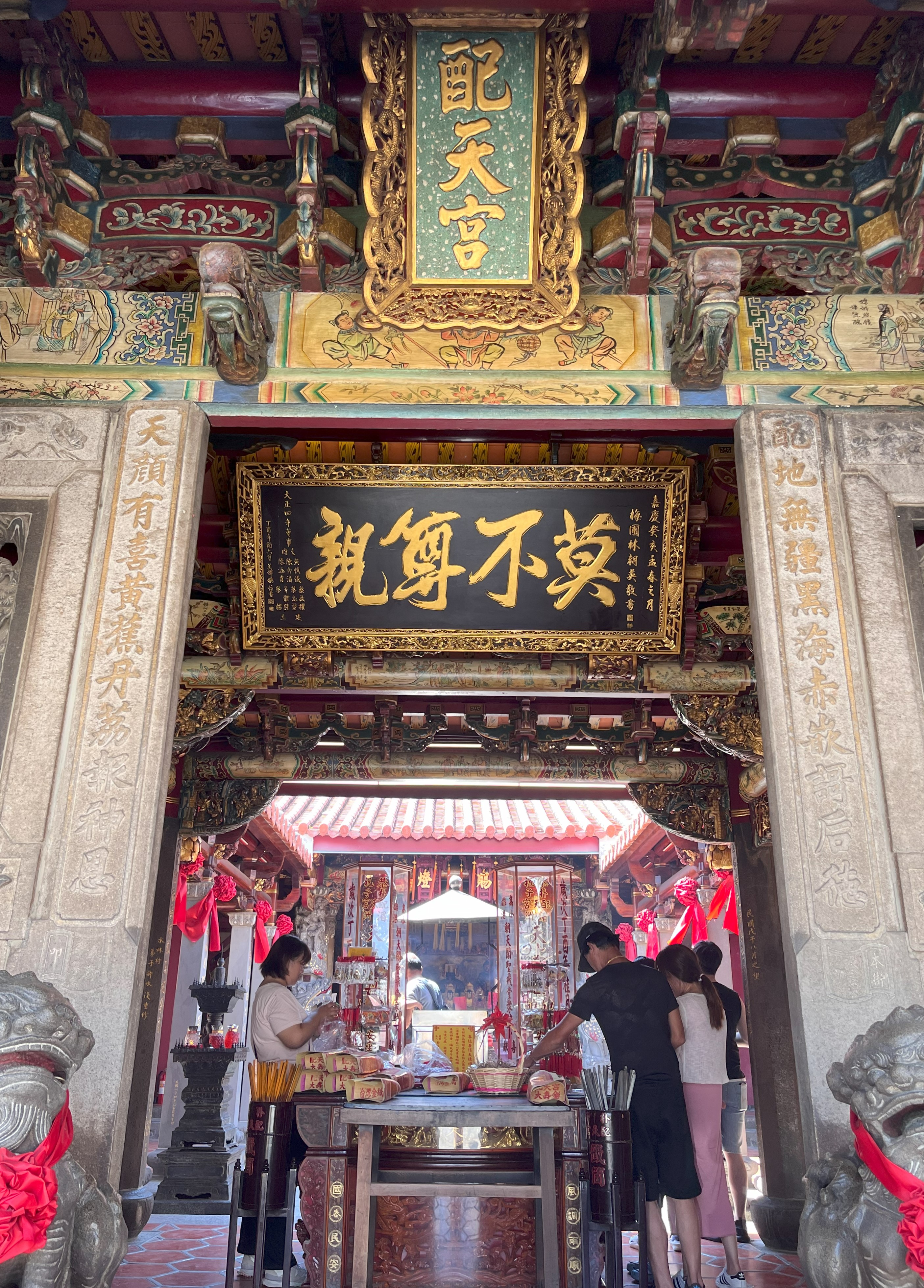 相傳配天宮創建於1687年(清康熙二十六年)。據說有位東石半月庄人士:林馬,篤信媽祖,每年均遠赴外地的媽祖廟參拜,由於旅程十分艱辛,因此在這年自湄州迎回媽祖神像,以在家中祭拜。迎回神像的回程,林馬經過朴子溪南岸朴(樸)樹下的茶棚,便歇腳休息,而附近居民得知此事,商請停留幾天,讓民眾可以參拜媽祖,可是數日後,當林馬欲啟程返家,神像卻變得沉重無法移動,擲筊問卜之下,神明表示永遠鎮守在此,於是民眾隨即搭建小廟祭祀;剛好廟旁有棵樸仔樹,所以作為廟名,稱作「樸樹宮」。之後聚落以本宮為中心向外發展,故朴子舊稱「樸仔腳」,即是得名於此。 「樸樹宮」後來更名為「配天宮」,原因年代眾說紛紜,根據較可信的說法是:1865年(清同治四年)重修工程落成時,廟方董事將廟名取意「配享千秋馨香、功參天地造化」而更名。 配天宮由於香火鼎盛,歷年來修建不斷,最早是在1715年(清康熙五十四年)擴建中殿和拜殿,清乾隆、嘉慶乃至於清同治年間,約每隔半世紀即進行修建。乃至於1915年(日大正四年)的第四次修建,據信是由漳州名師陳應彬主持,採用「對場作」的方式,並首開日本官方補助臺灣廟宇修建之例。二戰後較大的變動有:1947年(民國三十六年)重修後殿、新建了鐘鼓樓;1975年至1977年(民國六十四至六十六年)興建香客大樓;1981年(民國七十年)改建東西廂房。 元宵節結花燈是配天宮百餘年來最具特色的慶典,起源也和王得祿將軍有關。相傳嘉慶皇帝曾敕賜王將軍,可自行在府內舉辦花燈盛典供年邁的兄嫂觀賞,後來王將軍將花燈移至配天宮,藉此祝賀媽祖,且供民眾欣賞,燈會便成為本宮的元宵節傳統。