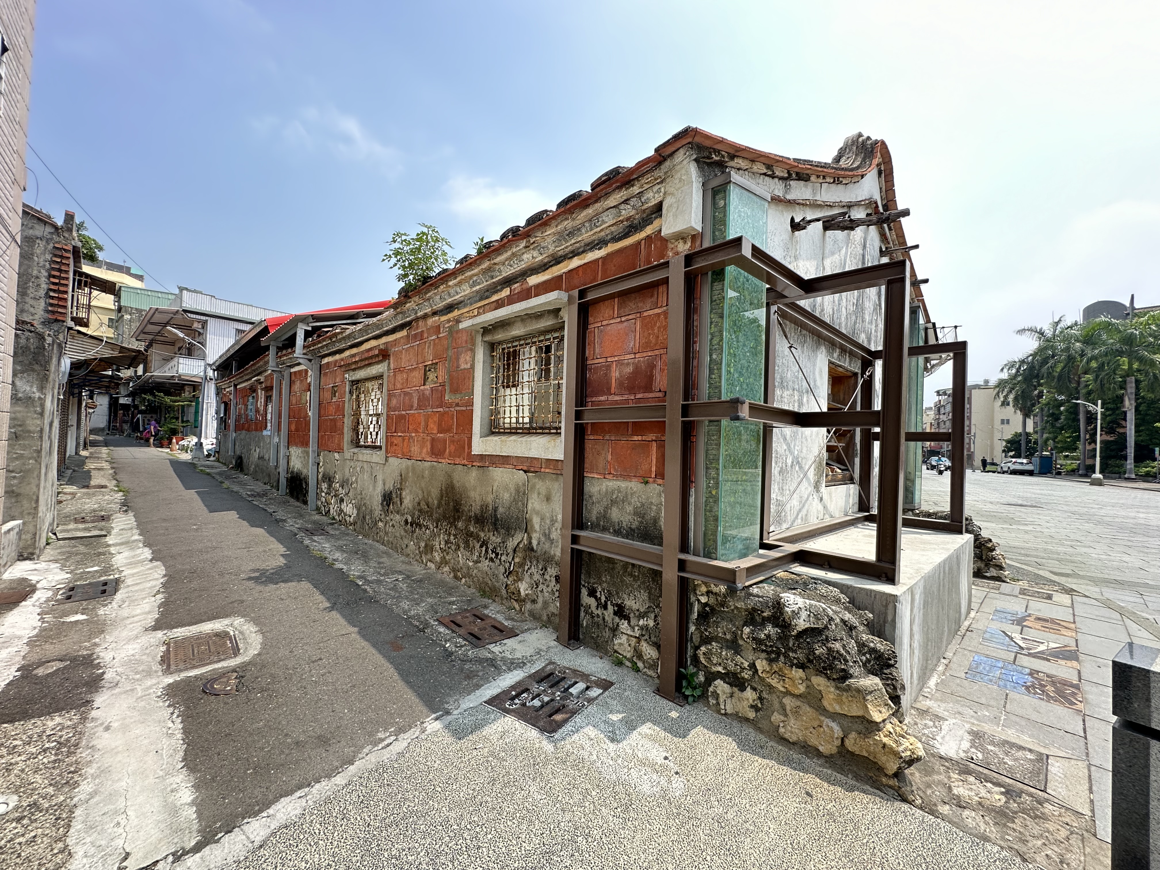 四鄰舊建物均已被拆除,僅保留右護龍(長屋),從正身起算到第二落山牆的部分。