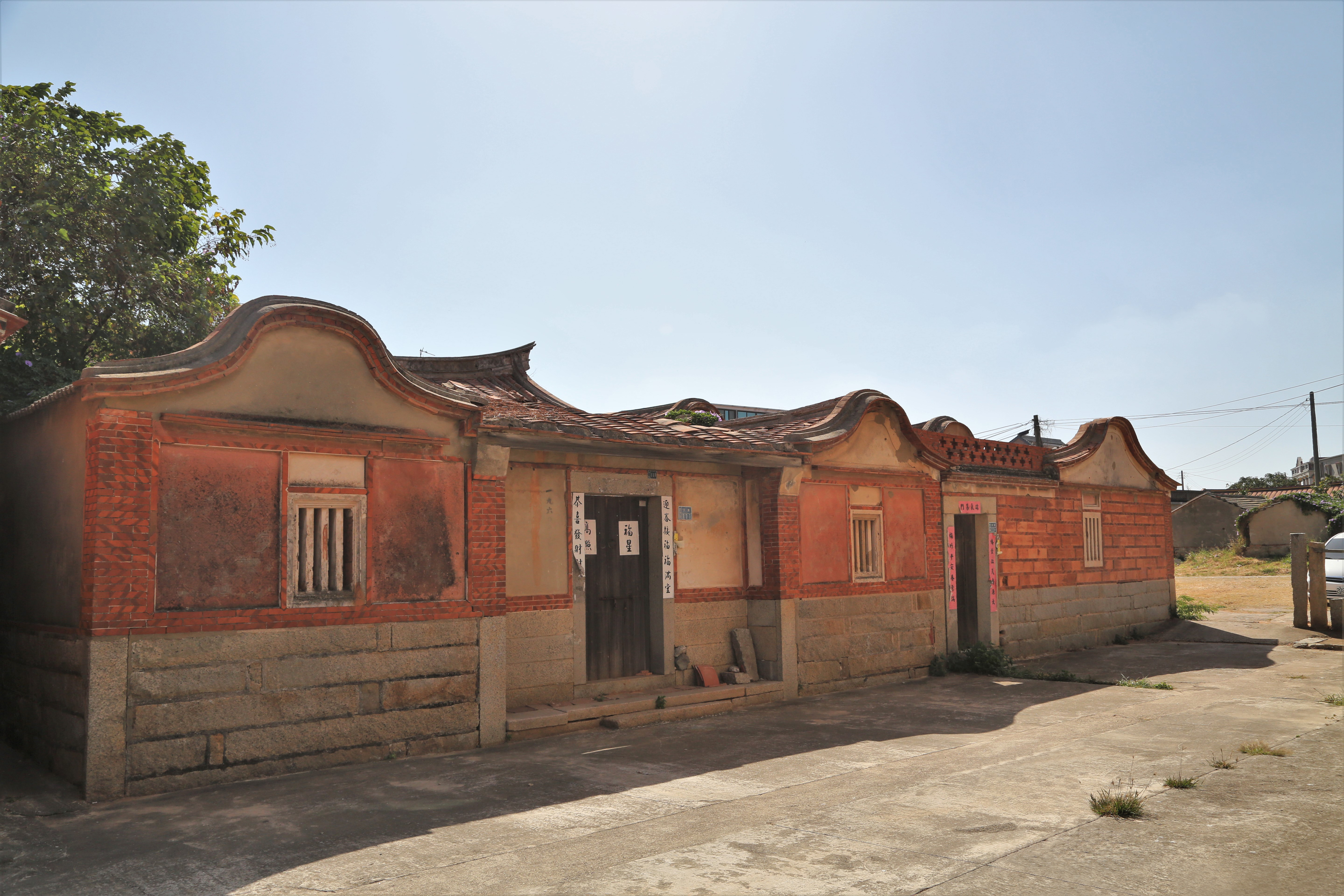 1.建築為三蓋廊加左護龍,護龍加建疊樓,採傳統瓦作雙坡屋面。 2.建築正立面前落榻受牆下緣為封堵石砌,兩側房下緣則採花崗磉石平砌,上緣牆面抹灰,以磚紅色呈現;左側護龍下緣為花崗磉石平砌,上緣為紅磚斗砌。側立面及背立面下緣為花崗磉石平砌,上緣牆面抹灰,立面轉角處皆以煙炙磚柱收邊。 3.正立面榻受牆上可見有字跡,然已風化難辨,僅可見「一九六O」。正立面護龍女兒牆以煙炙磚疊砌,呈「十」字鏤空造型;背立面女兒牆則以綠釉花磚裝飾。
